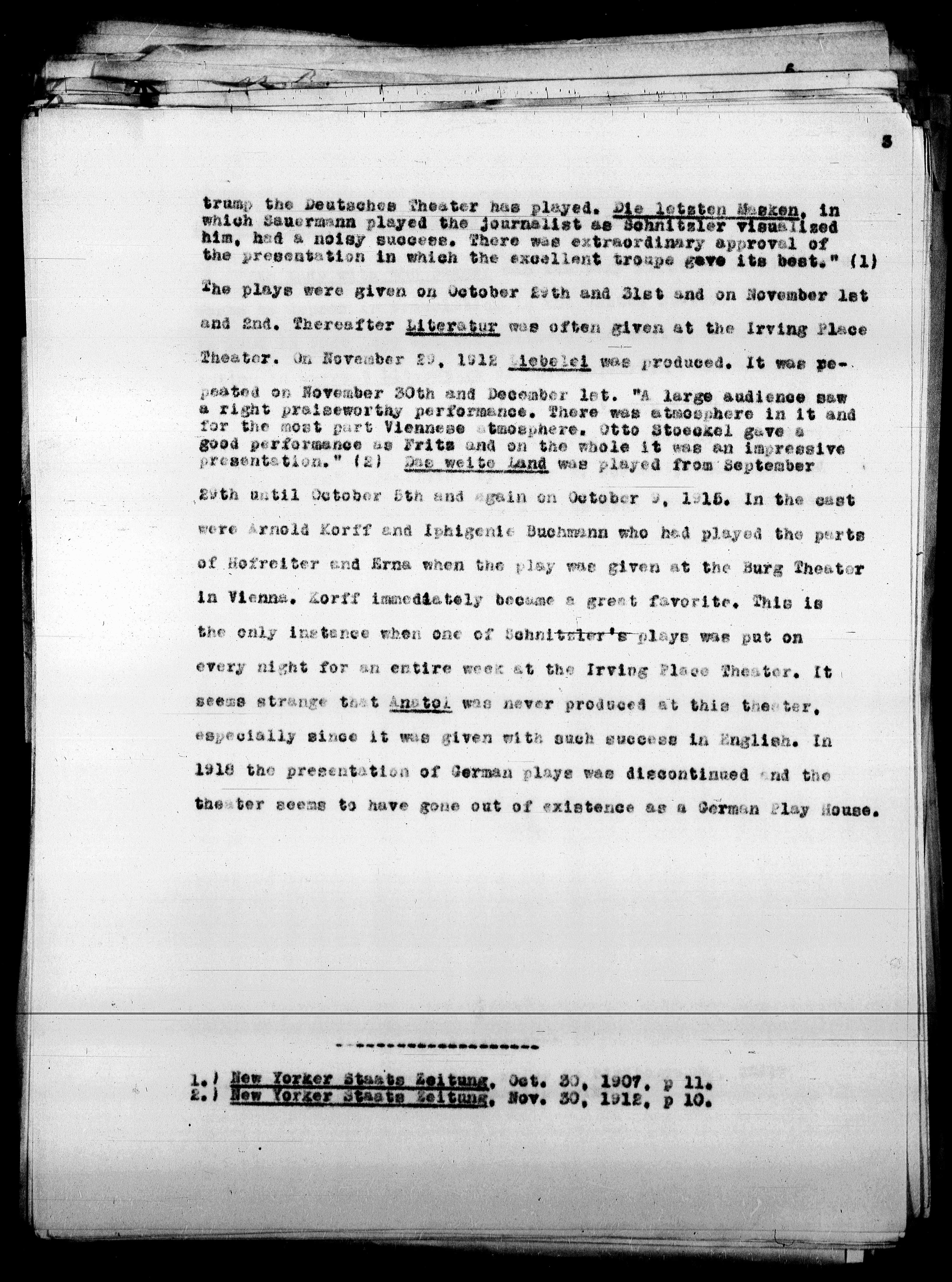 2. Mev. Törker Staats zeitung, Nov. 30, 1912. p. 10.