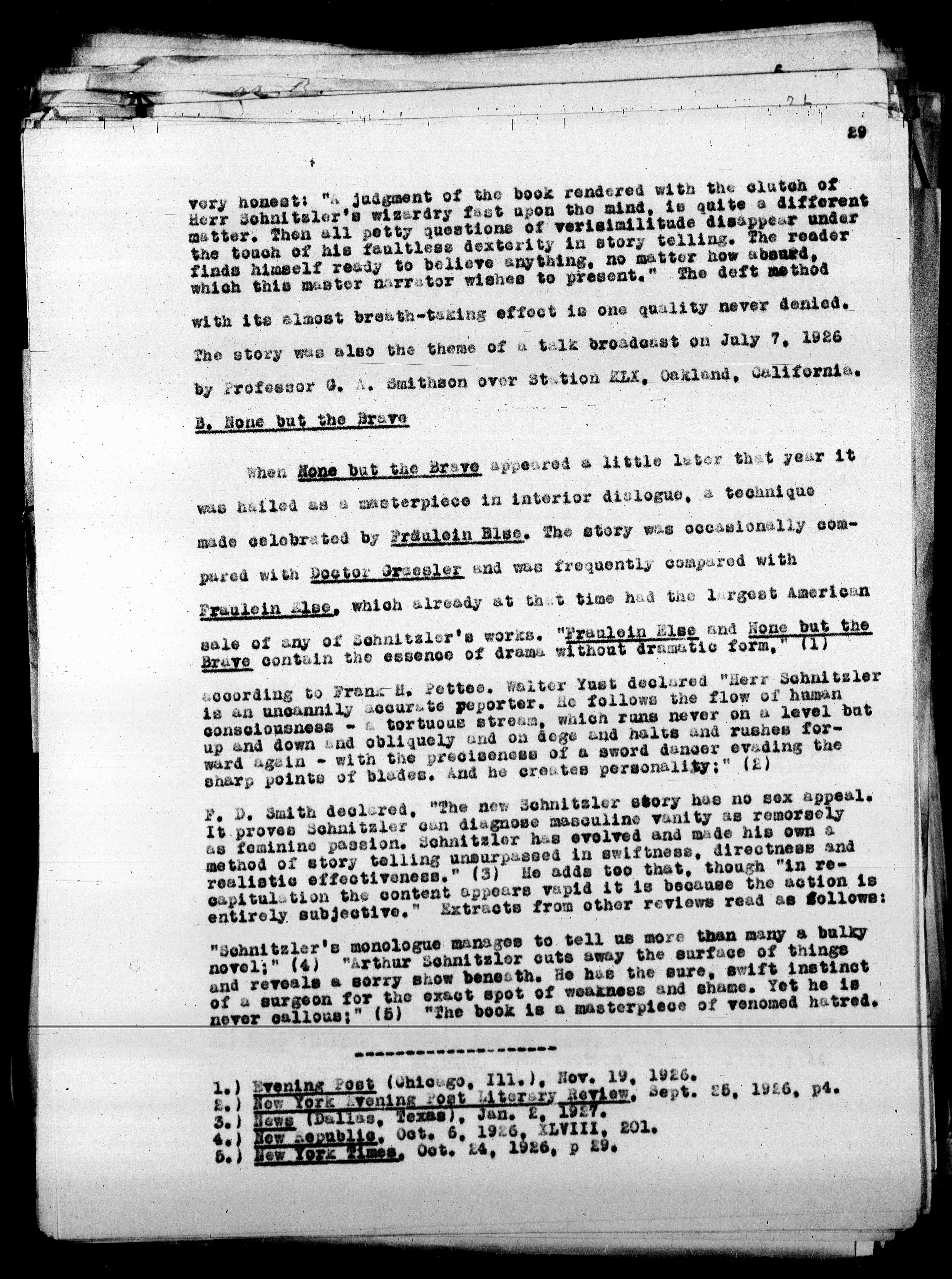 according to Frank H. Pettee. Walter Yust declared "Herr Schnitzler