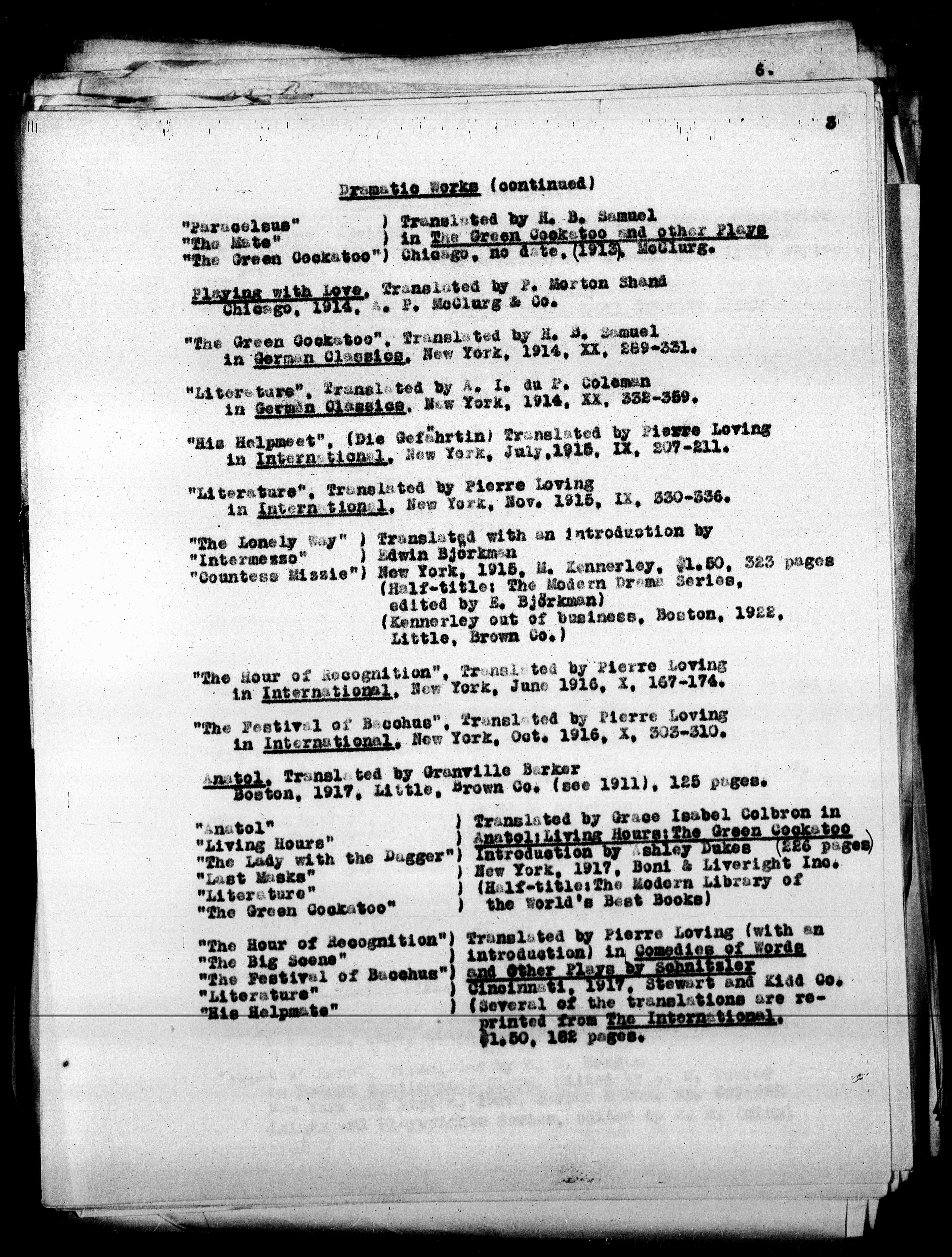 Dramatio Works (continued)