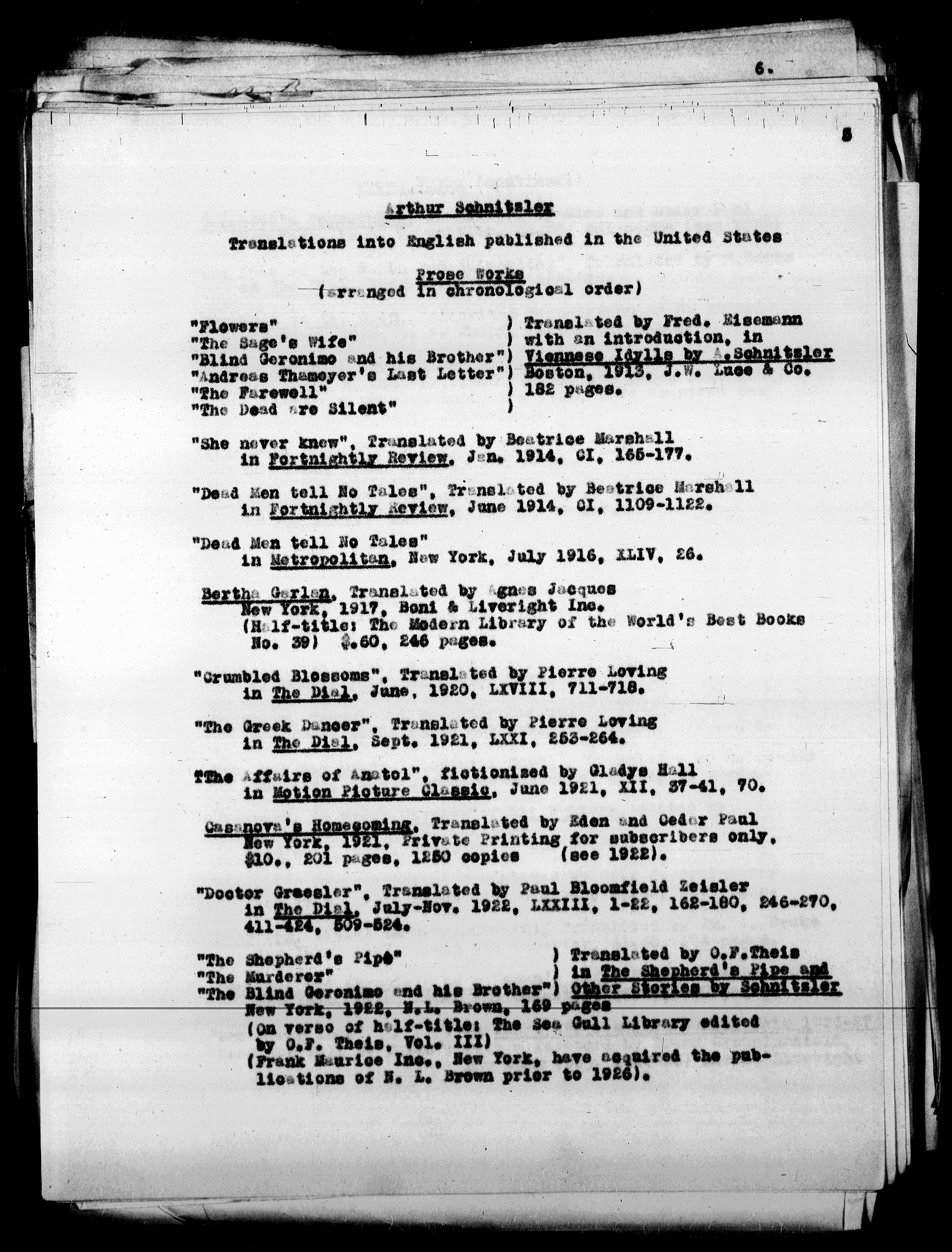 "Doctor Greesler", Translated by Paul Bloomfield Zeisler