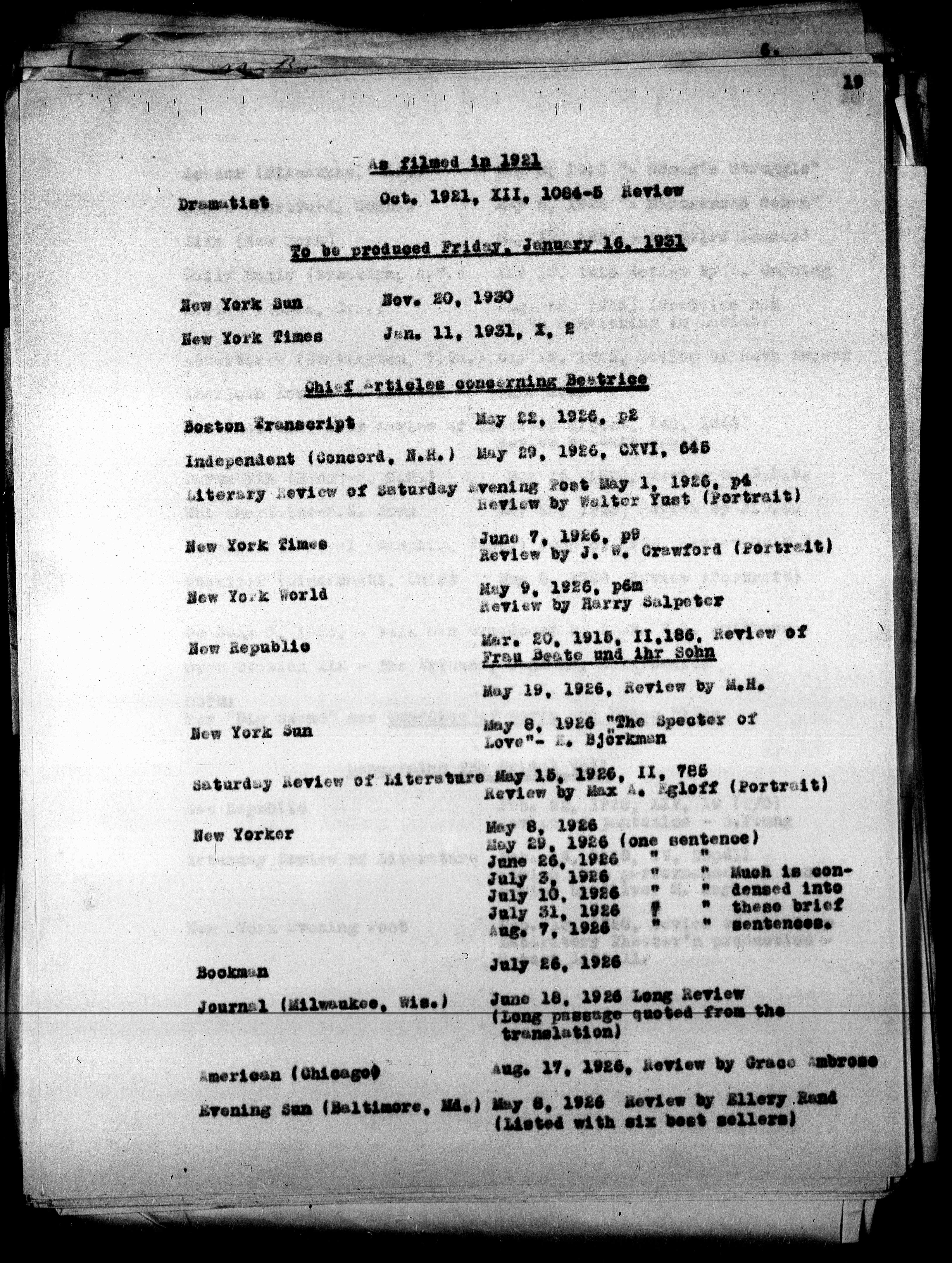 Chief Articles concerning Beatrice