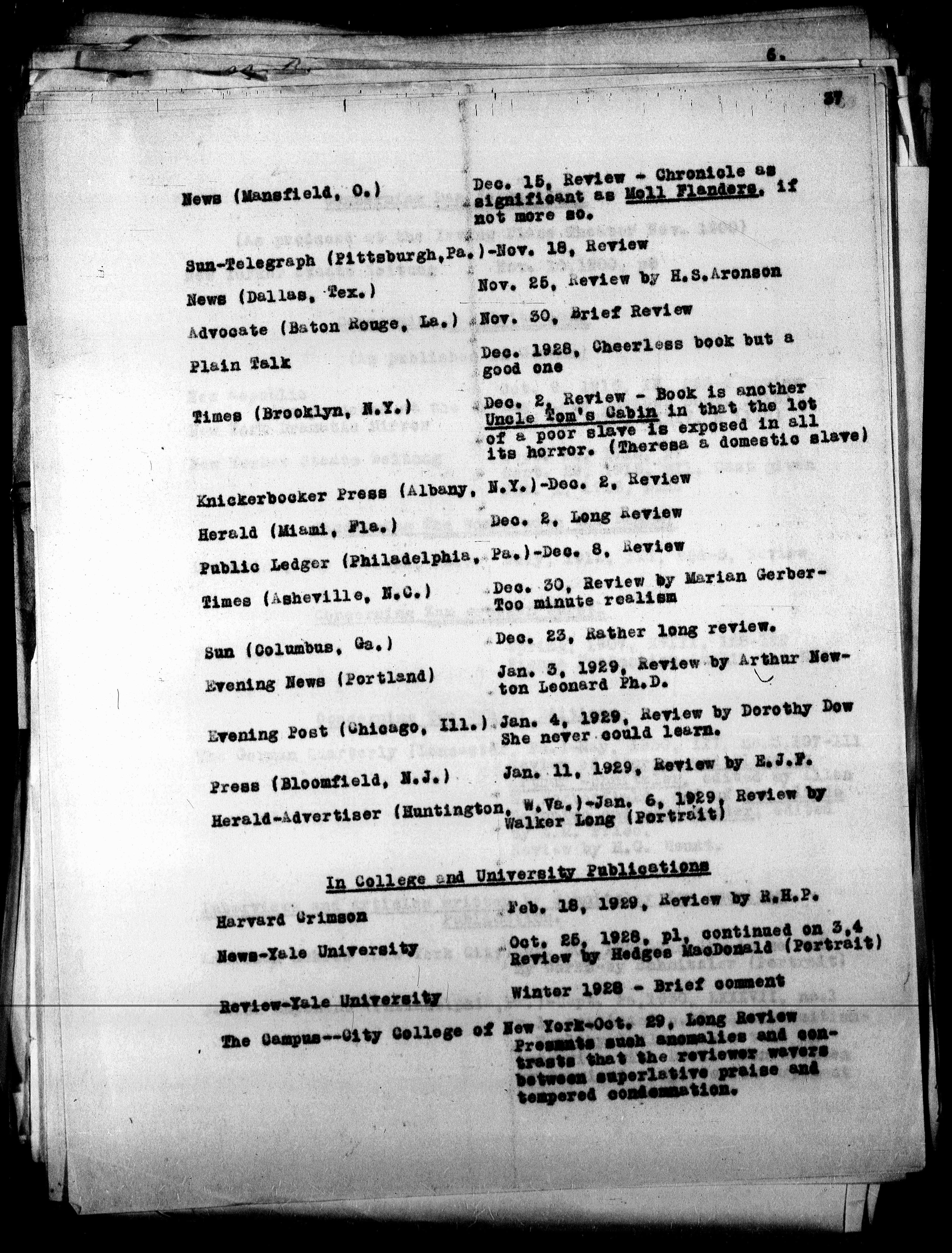 Evening Post (Chioago, 111.) Jan. 4, 1929, Review by Dorothy Dow