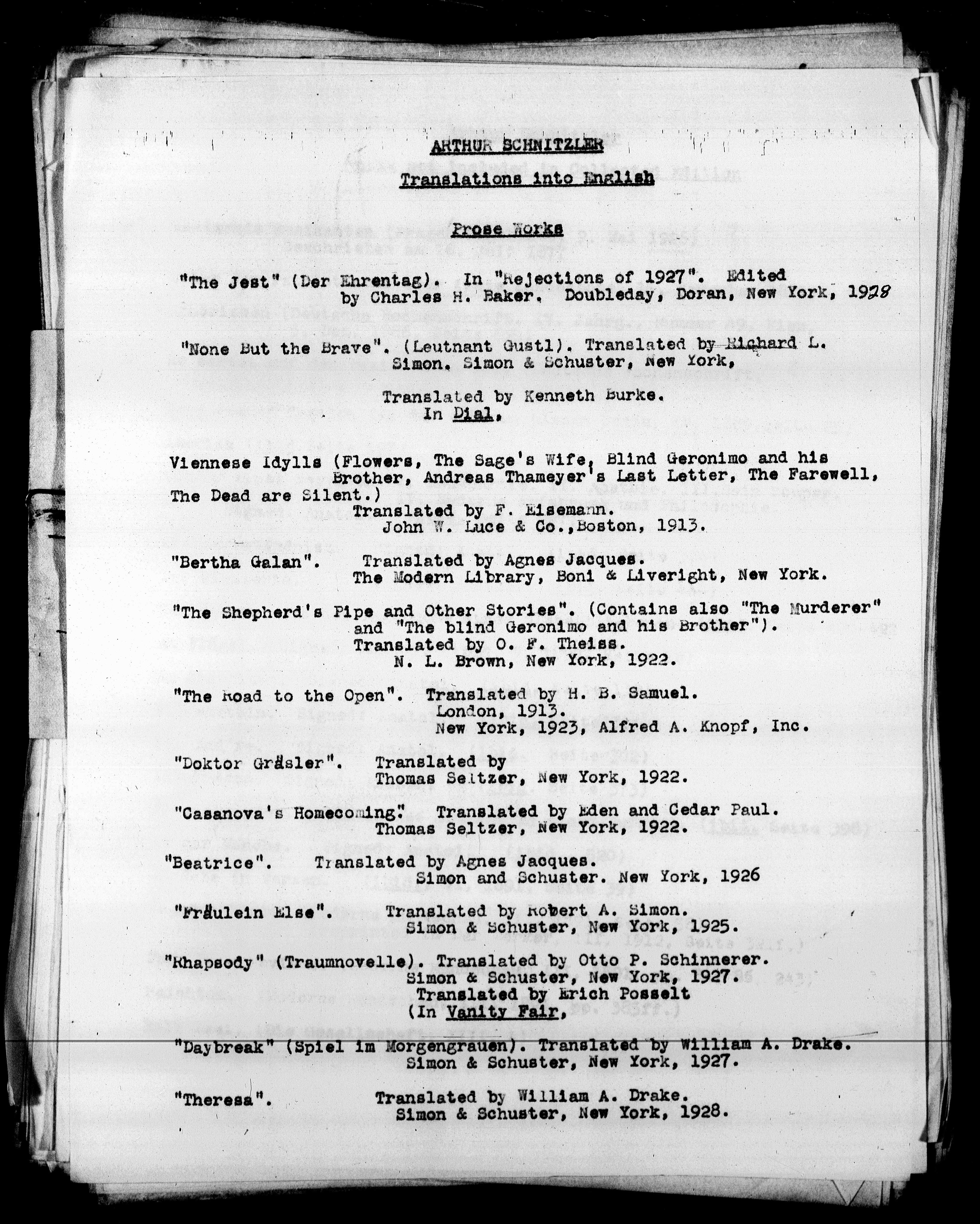 ARTHUR SCHNITZLER