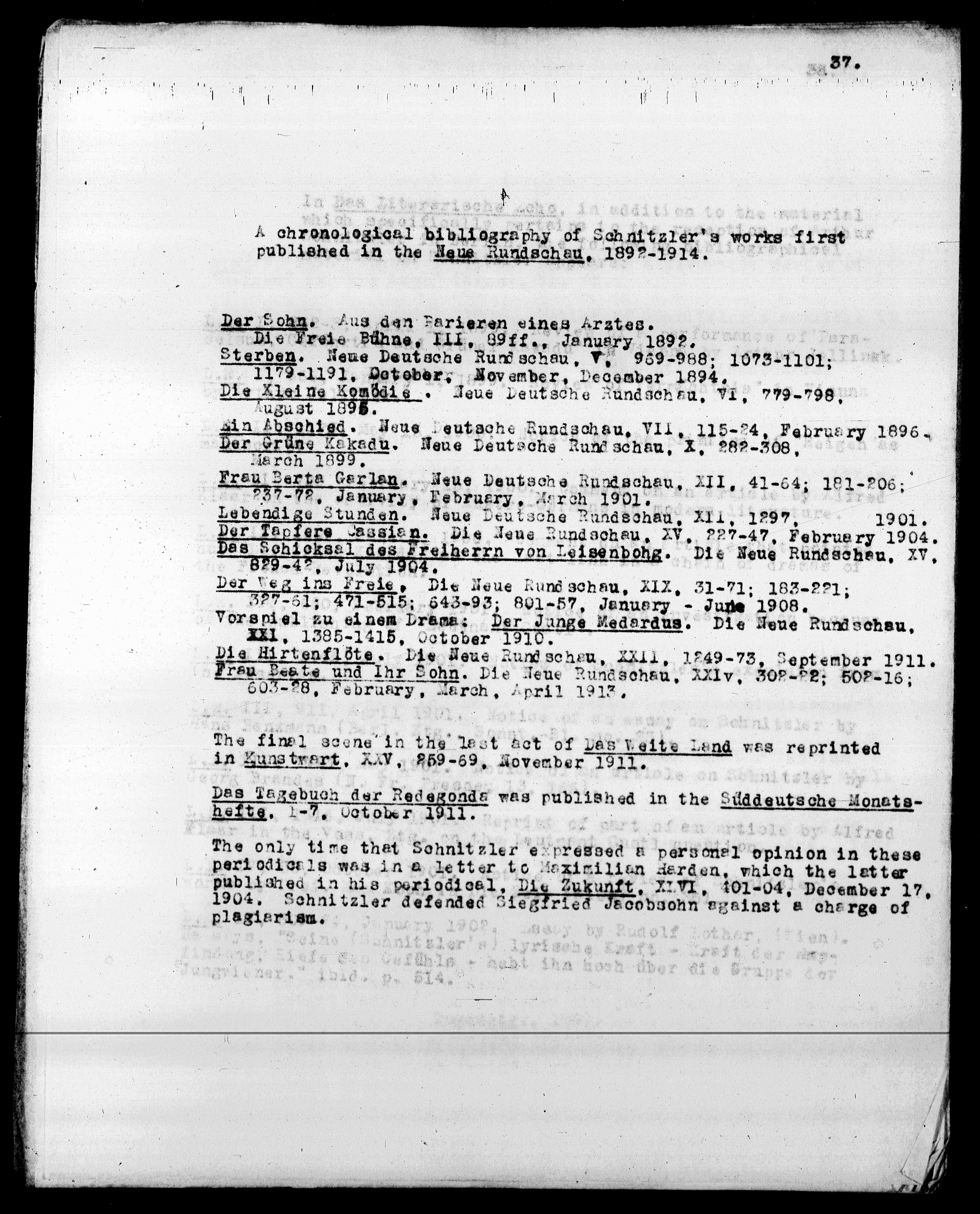 A chronological bibliography of Schnitzler's works first