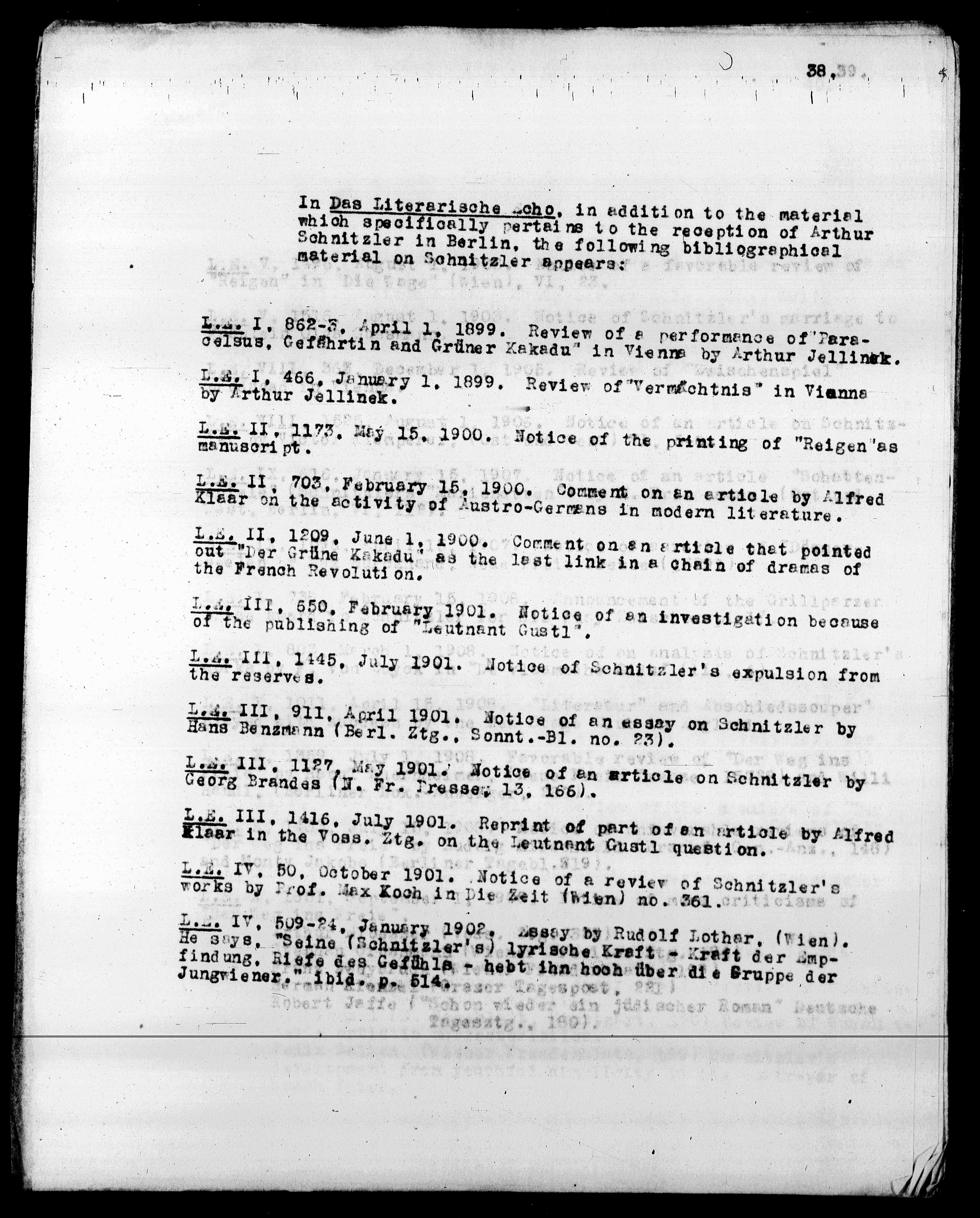 L.E. IV, 50, October 1901. notice of a reviev of Schnitzler's