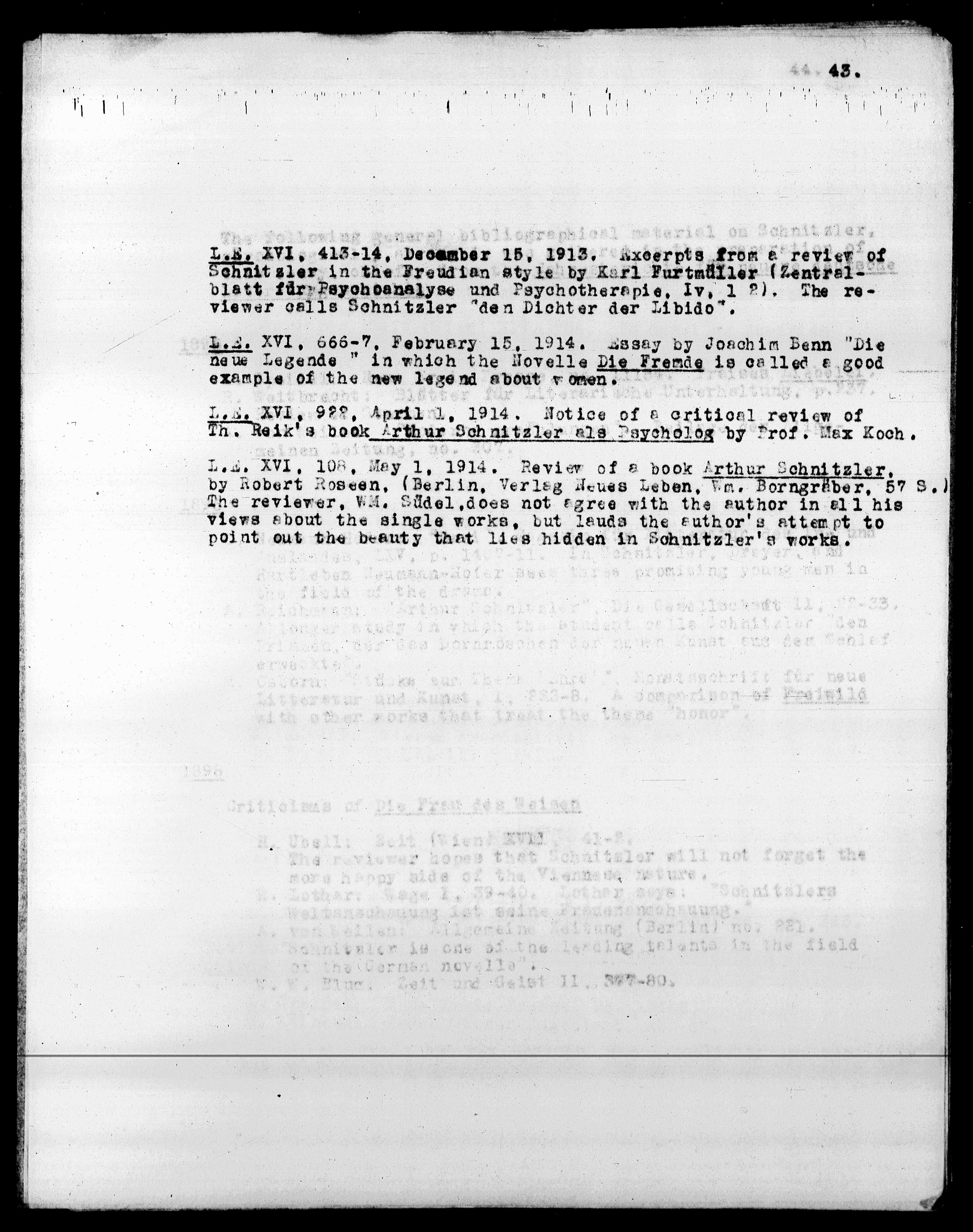 L.E. XVI. 108. May 1. 1914. Reviev of a book Arthur Schnitzler.