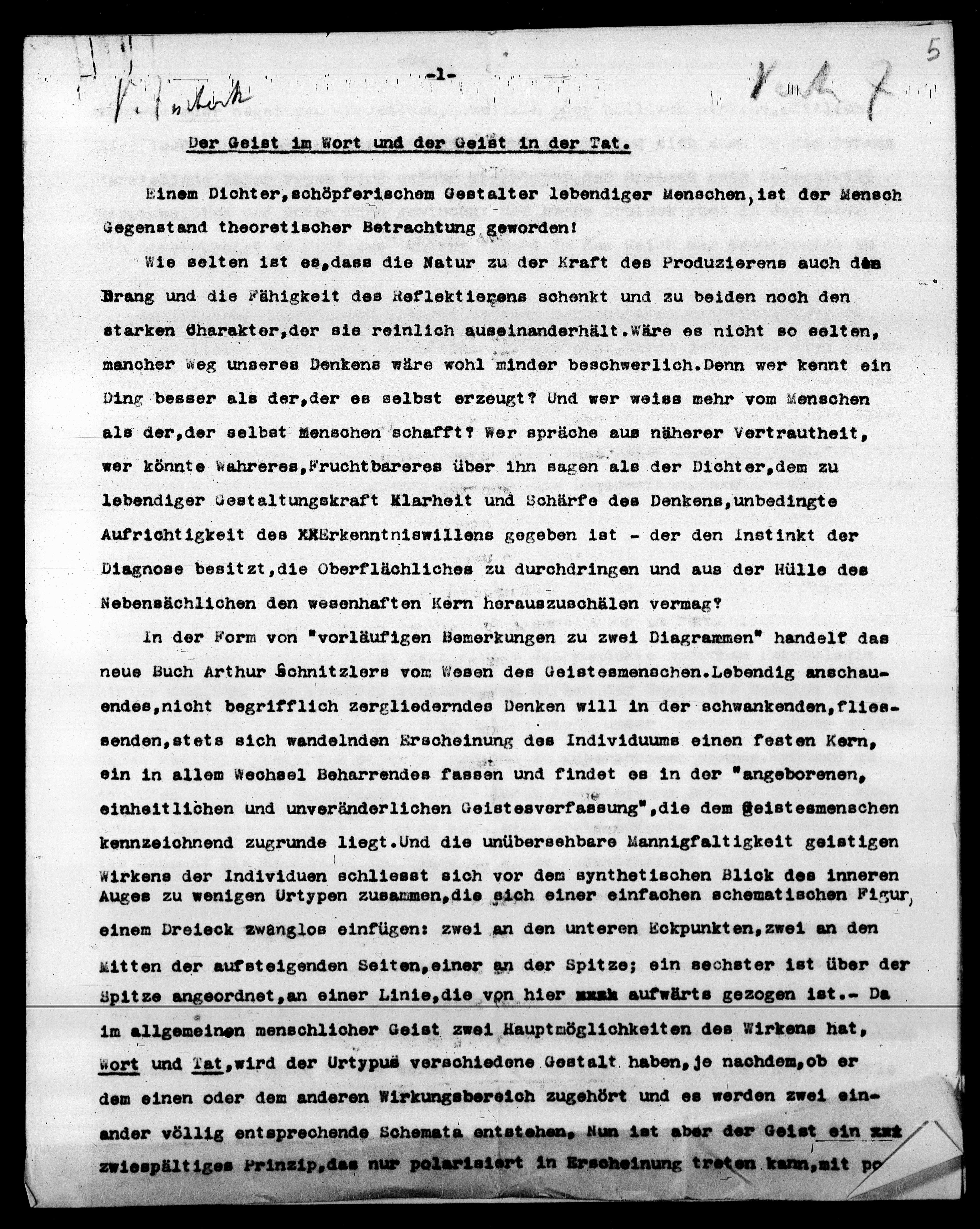 Wort und Tat, wird der Urtypuä verschiedene Gestalt haben, je nachdem, ob er