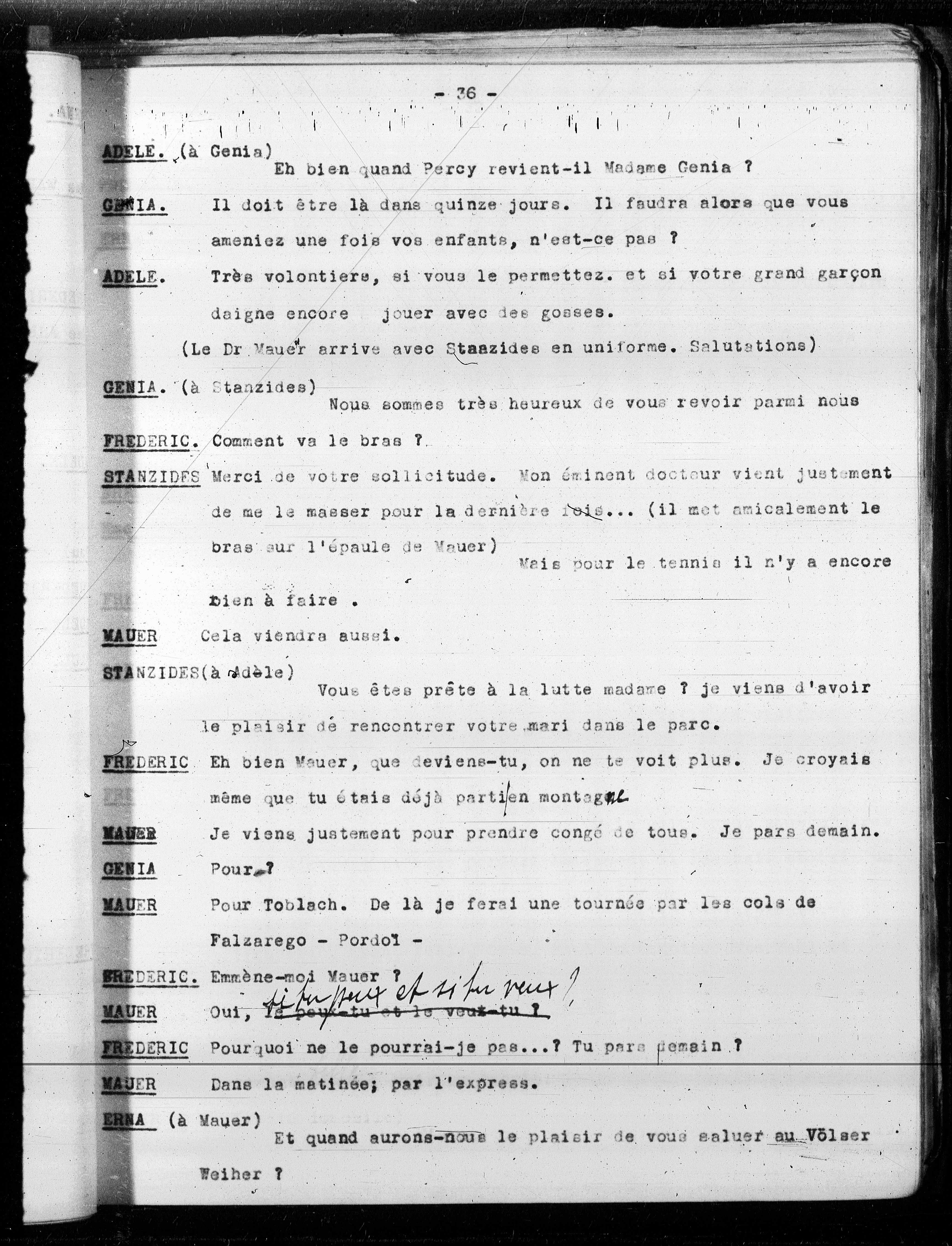 (Le Dr Mauer arrive avec Stanzides en uniforme. Salutations)