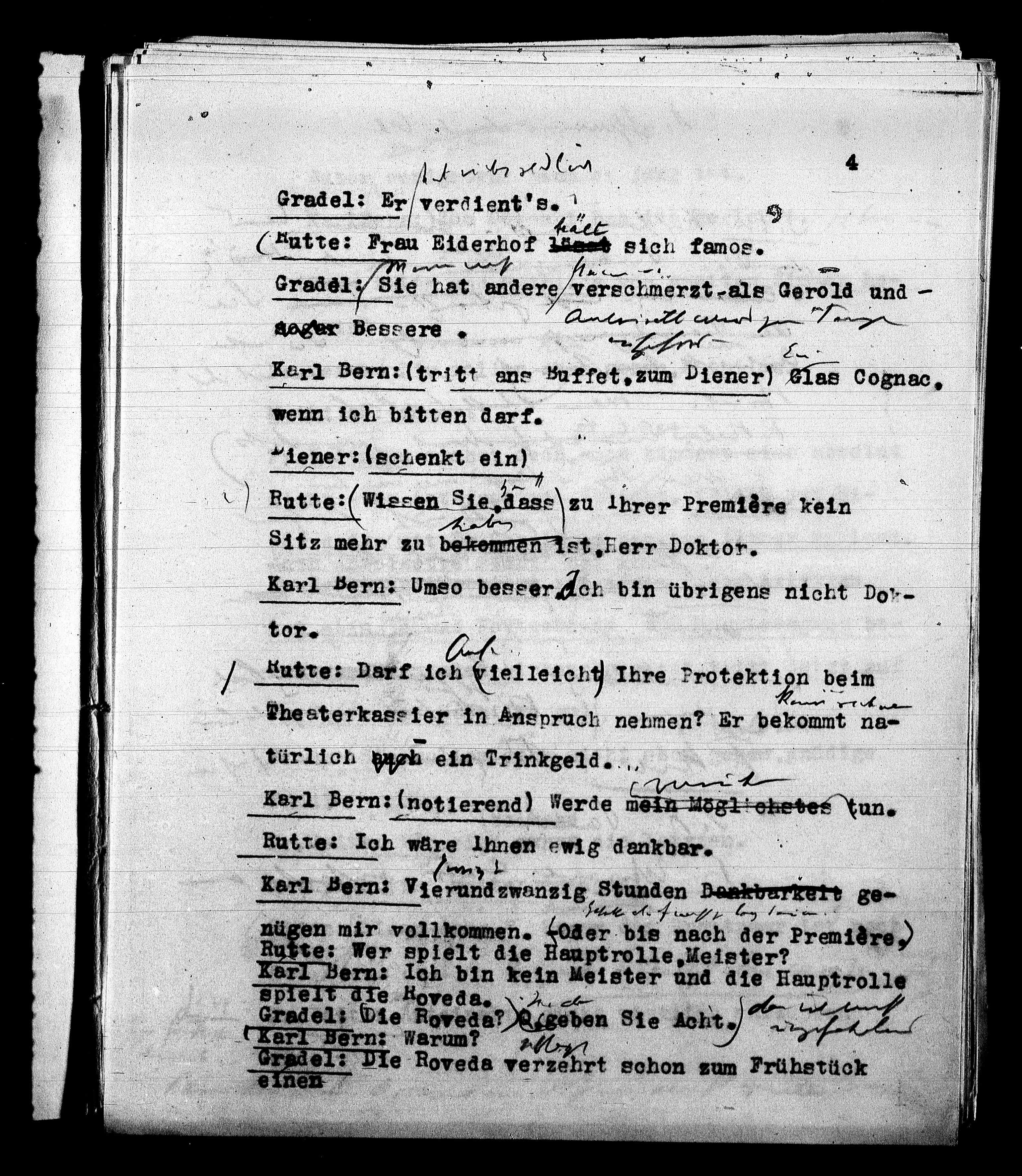 Karl Bern: (tritt ans Kuffet, zum Diener) Mas Cognac.