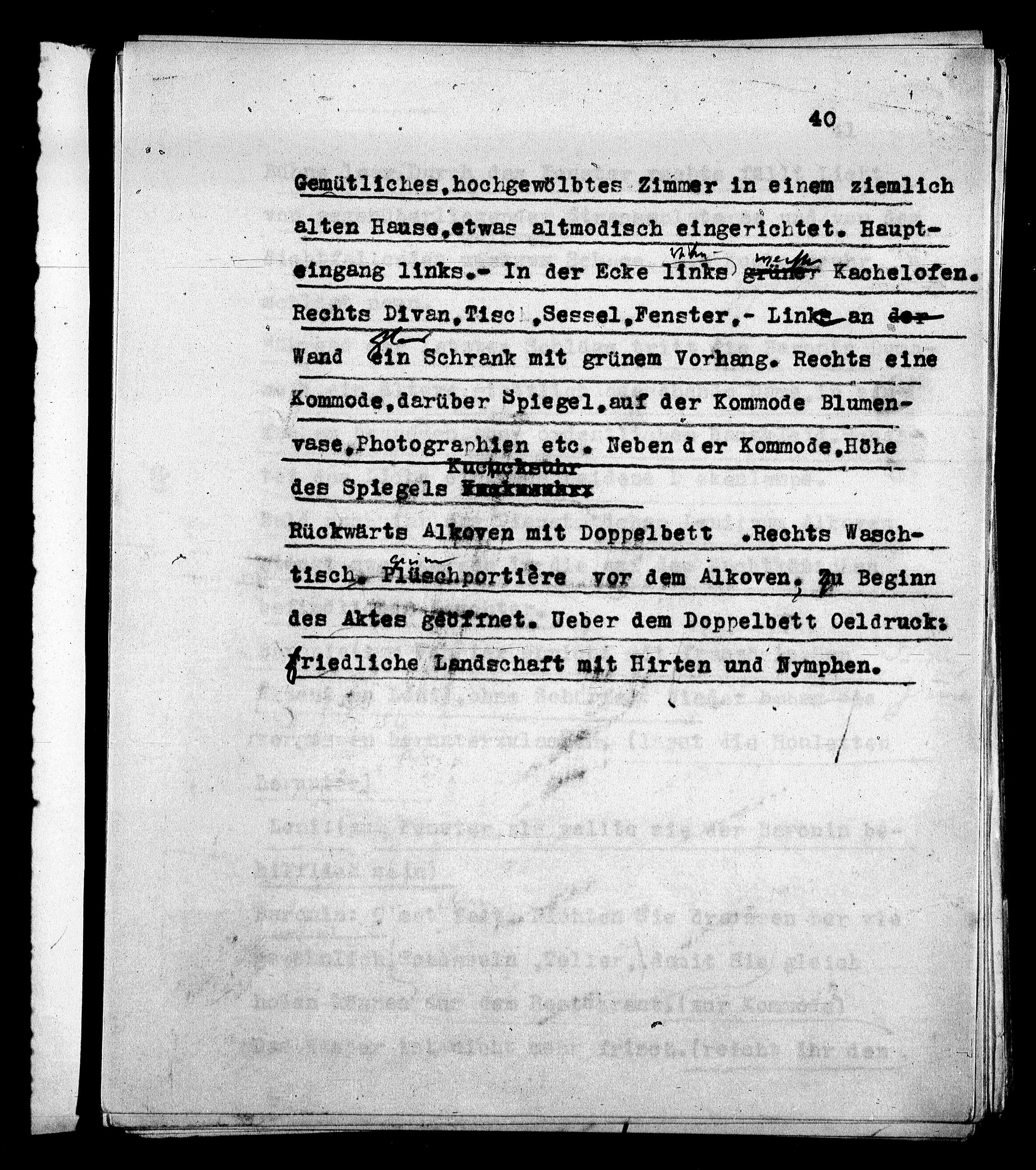 des Altes getErnet. Ueber dem Doppelbett Oeldruck-