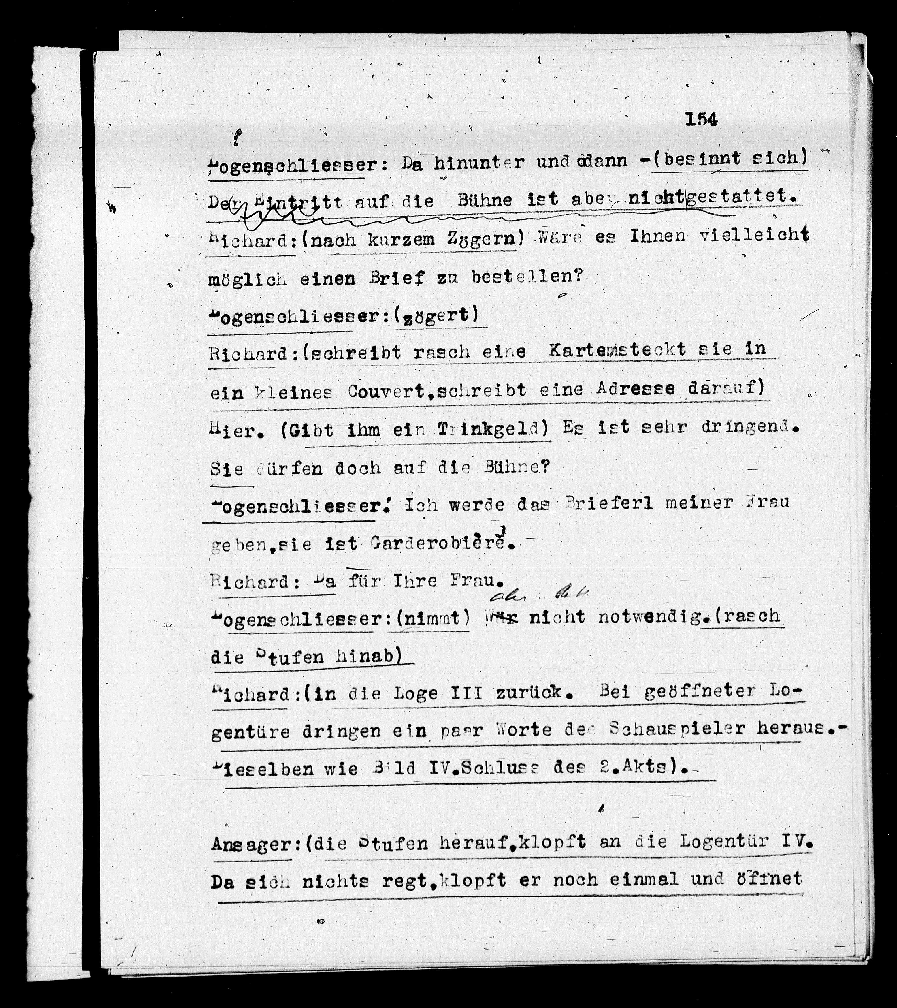 Ansager: (die Stufen herauf,klopft an die Logentür IV.