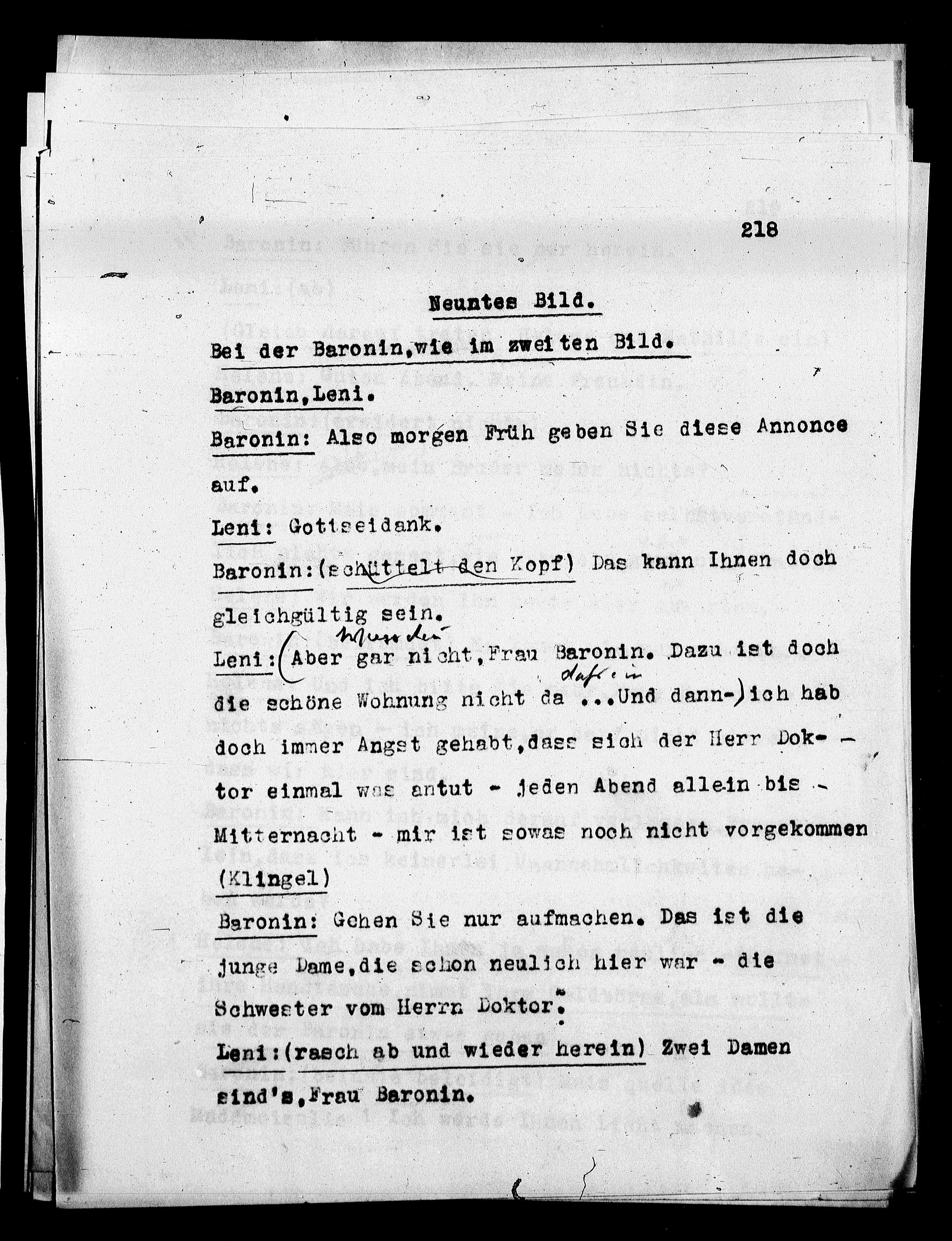 Leni: (Aber gar nicht, Frau Baronin. Dazu ist doch