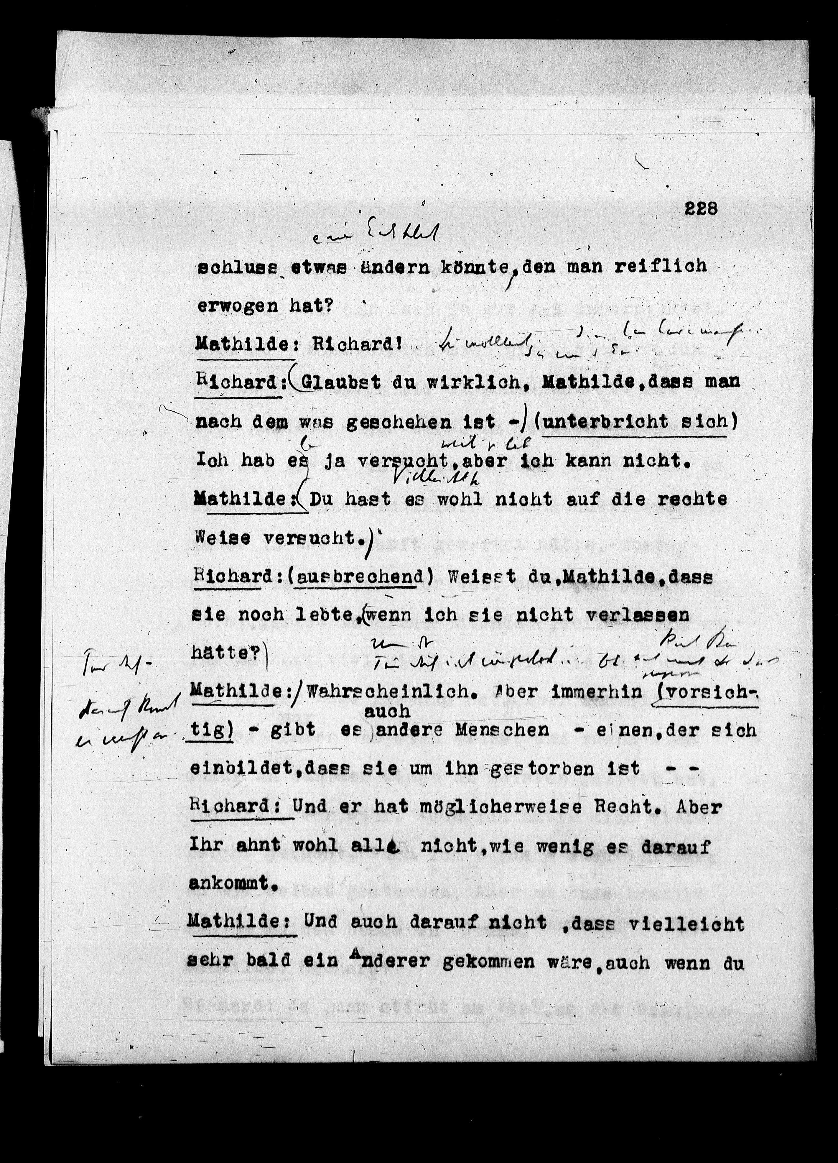Kichard: (ausbrechend) Weiest du, Mathilde, dass
