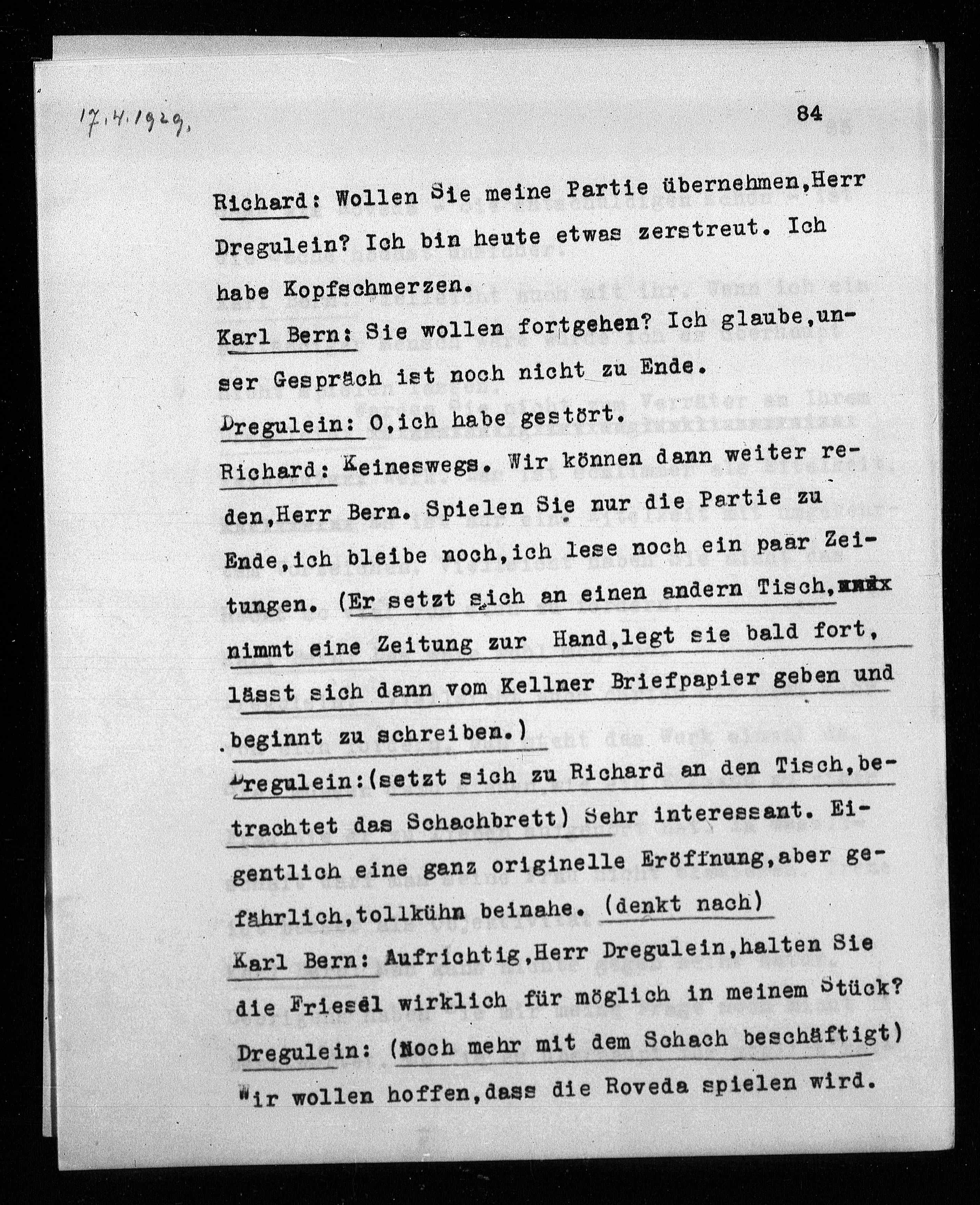 Dregulein: (noch mehr mit den Schach beschäftigt)