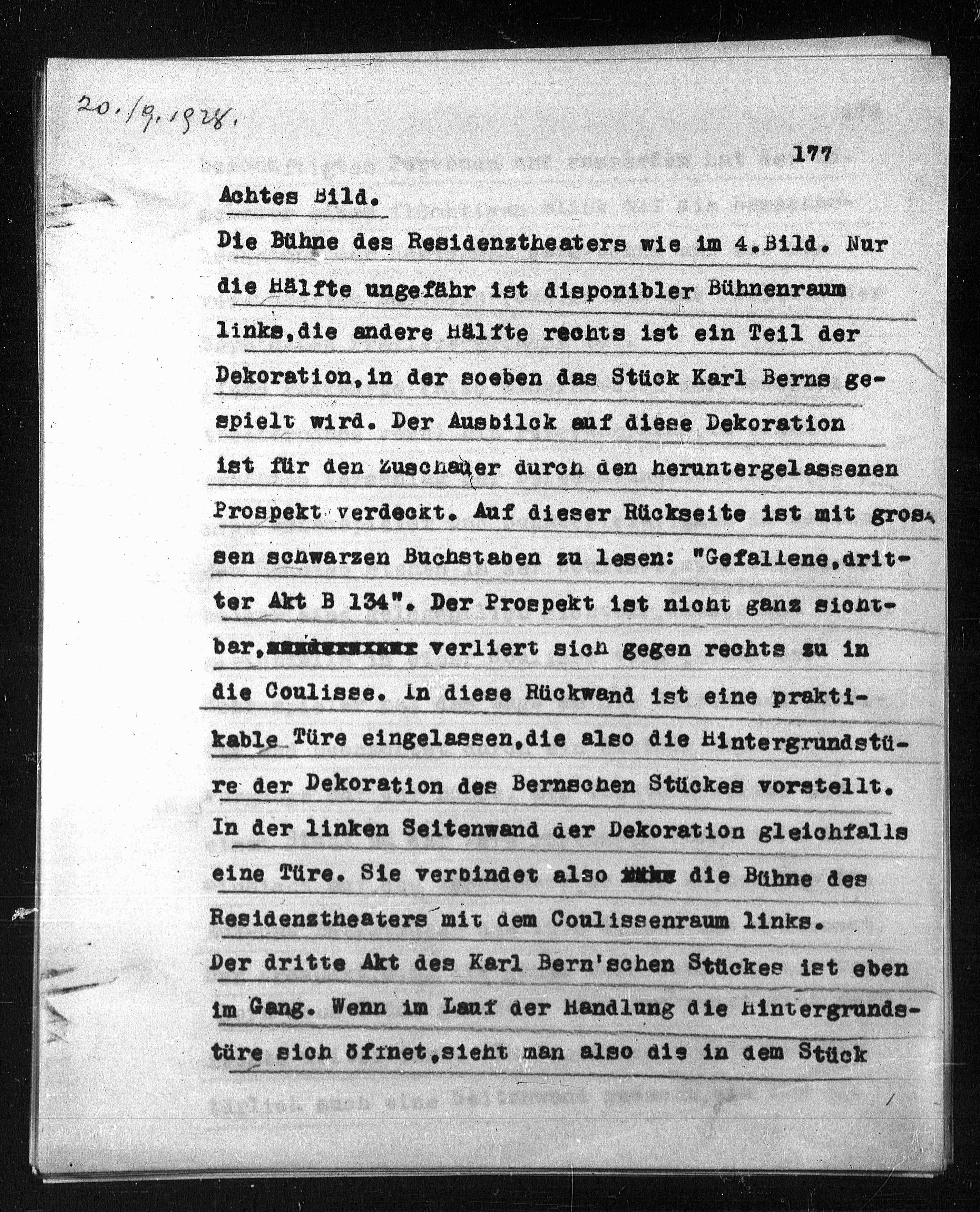 Dekoration, in der soeben das Stück Karl Berne 80-