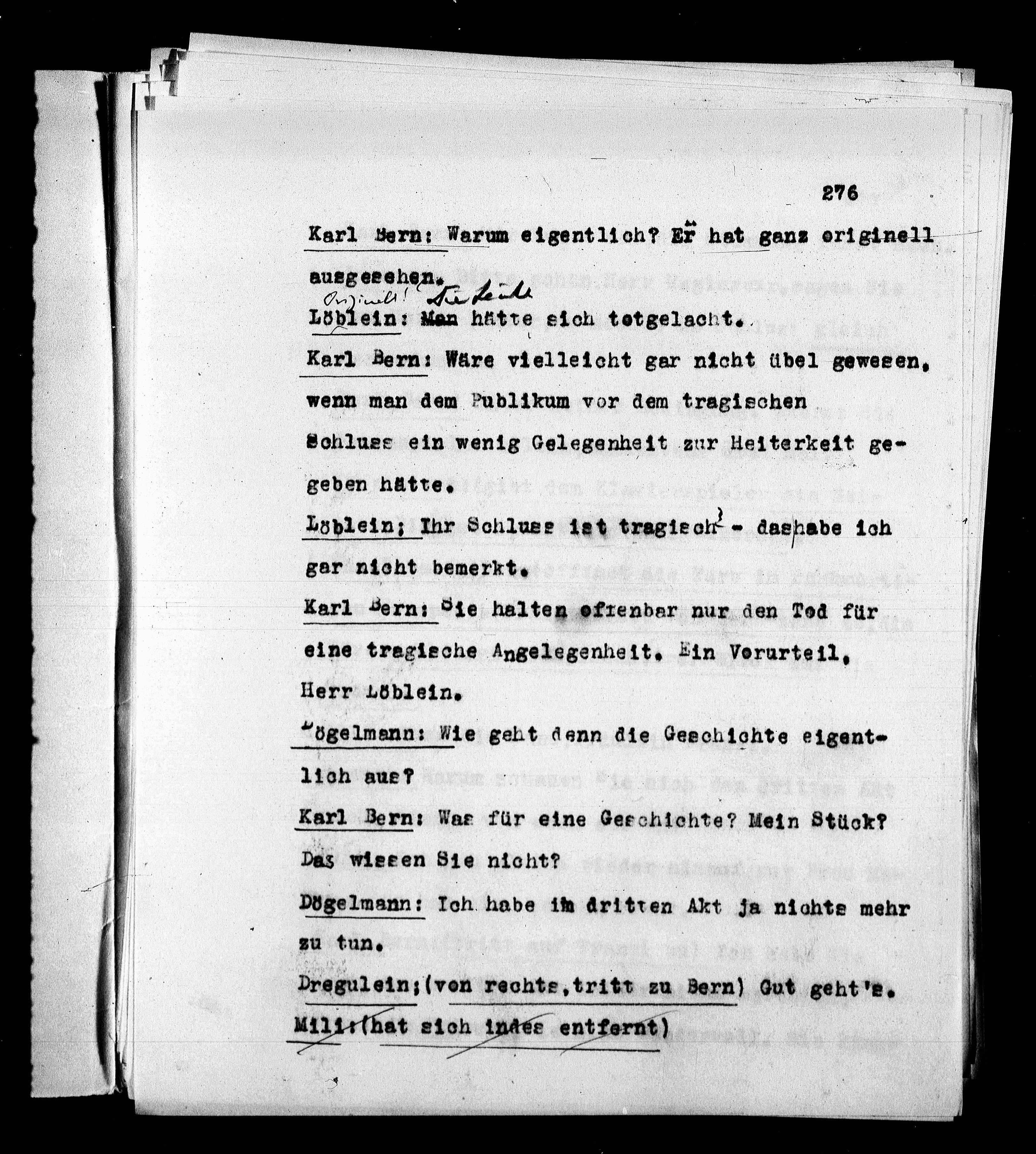wenn man dem Publikum vor dem tragischen