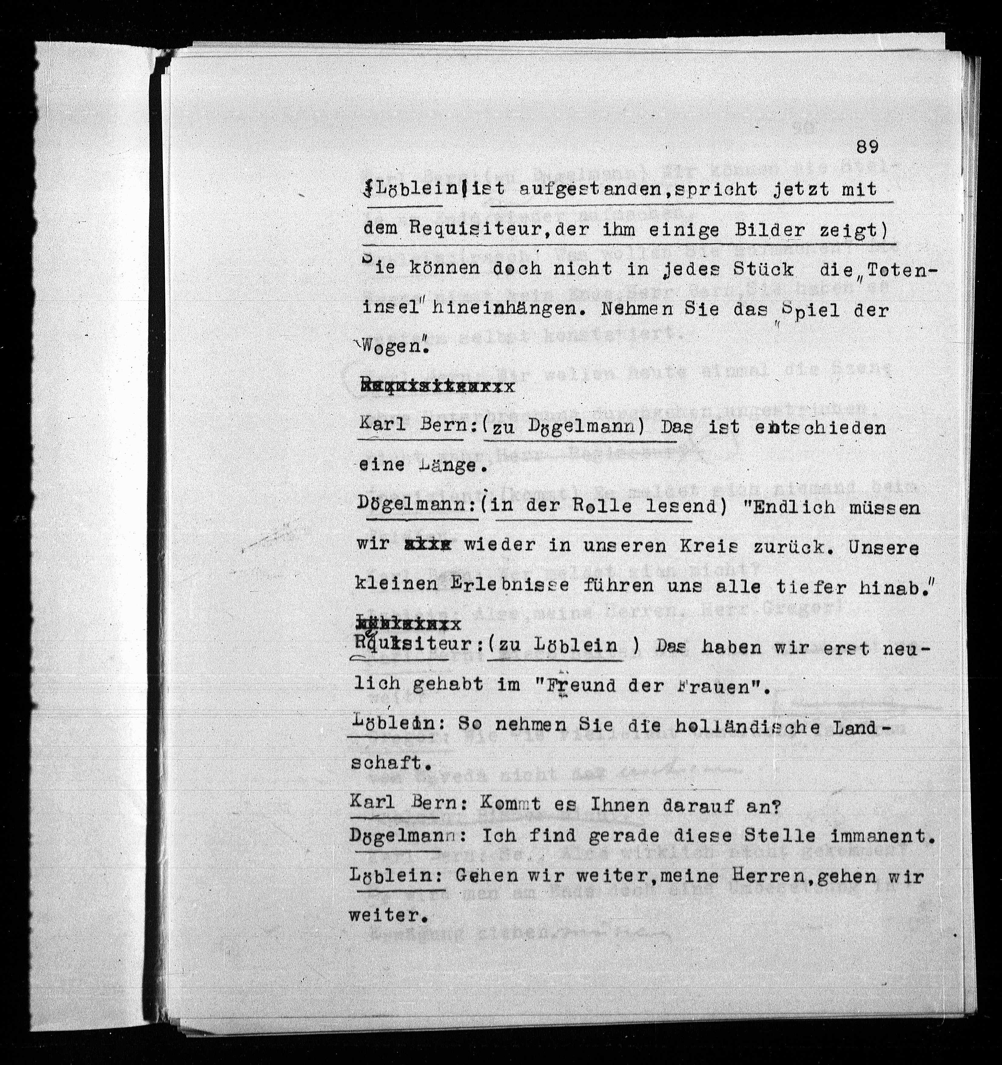Dogelmann: (in der Kolle lesend) "fndlich müssen