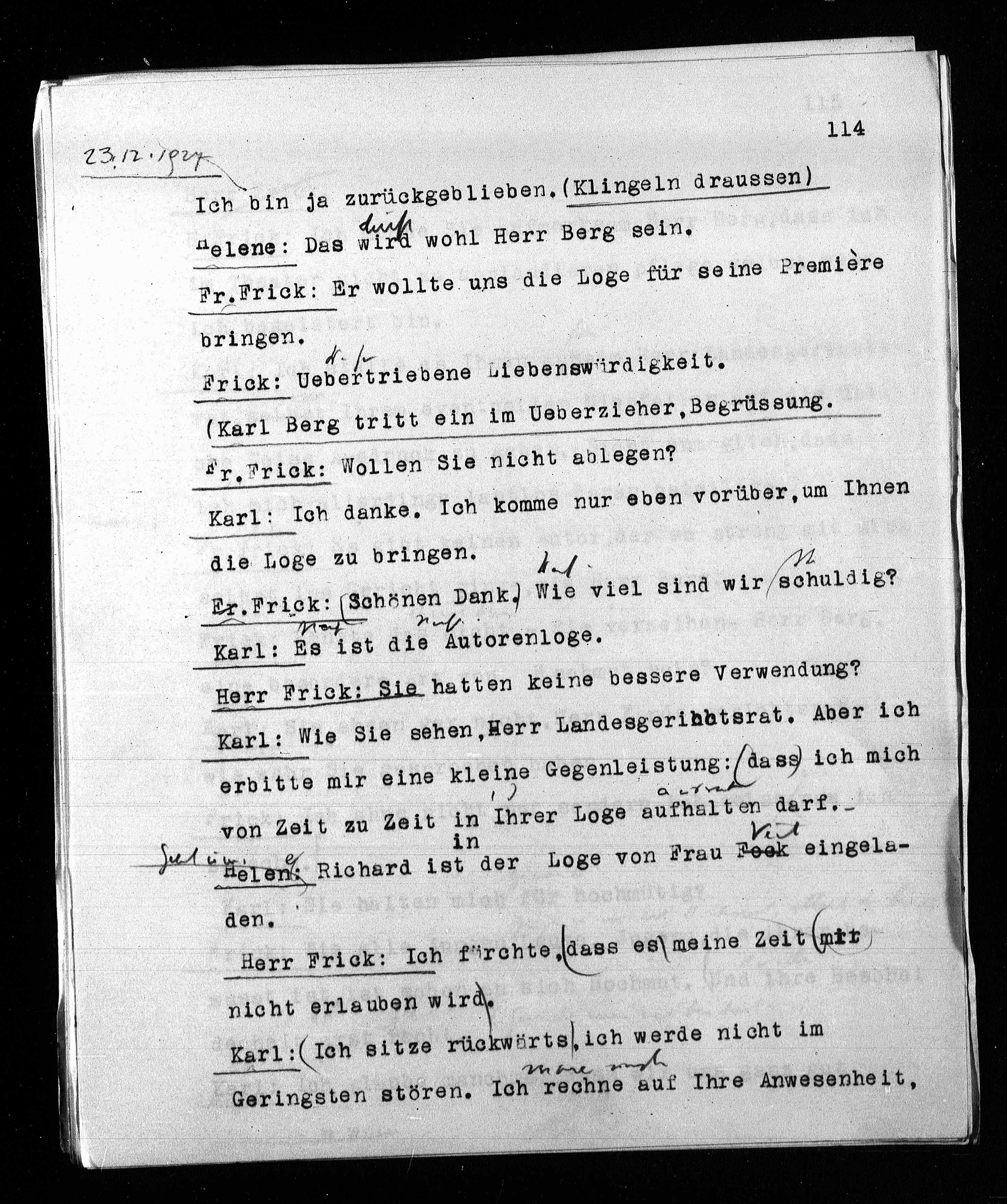 Fr. Frick: Er wollte uns die Loge für seine Prentére