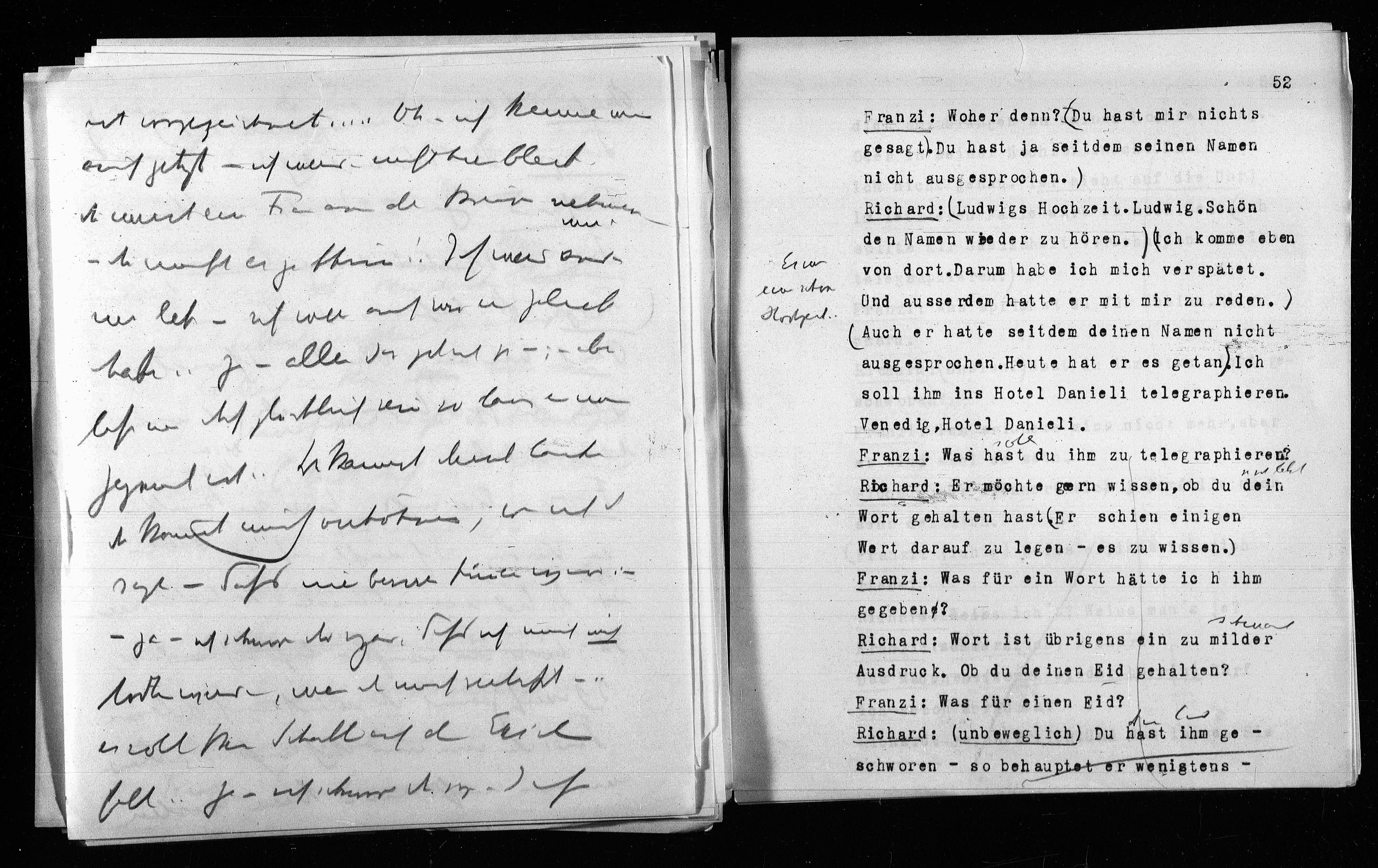 soll ihm ins Hotel Danieli telegraphieren.