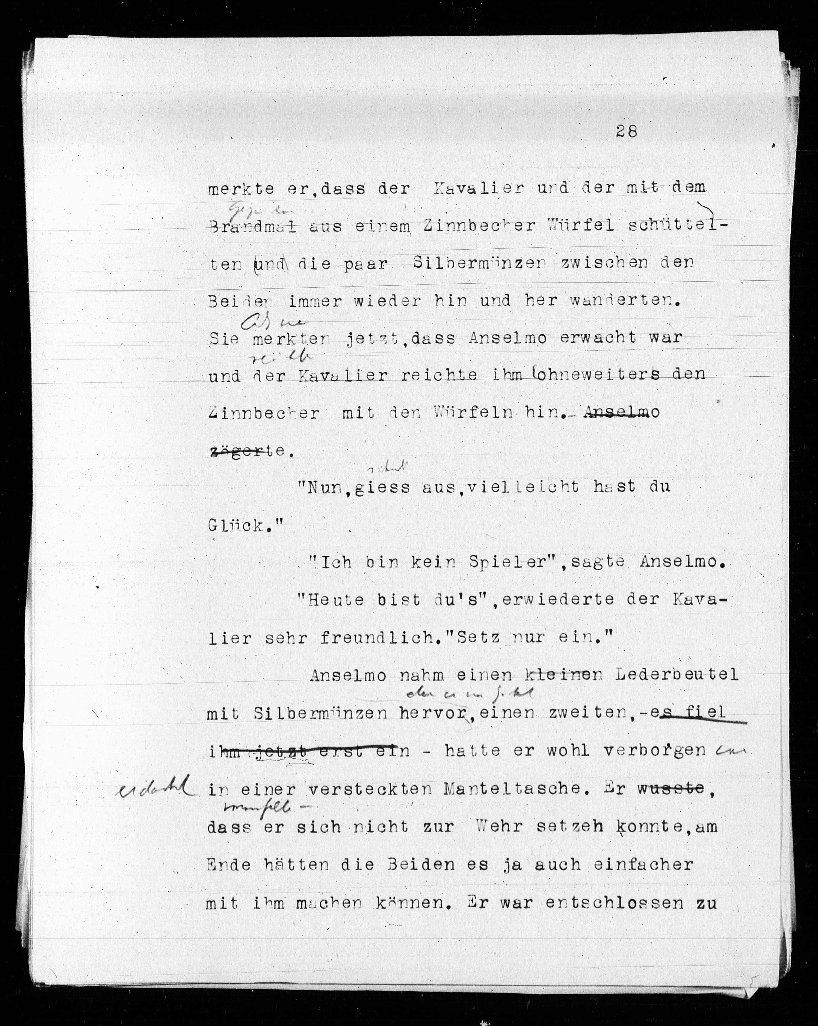 Zinnbecker mit den Würfeln hin. Anselmo