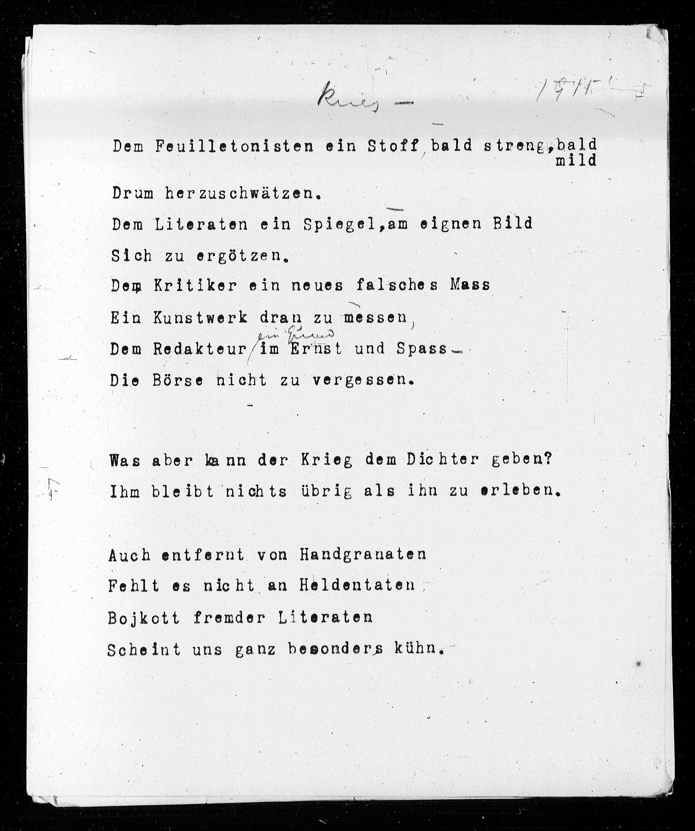 Was aber kann der Krieg dem Dichter geben?