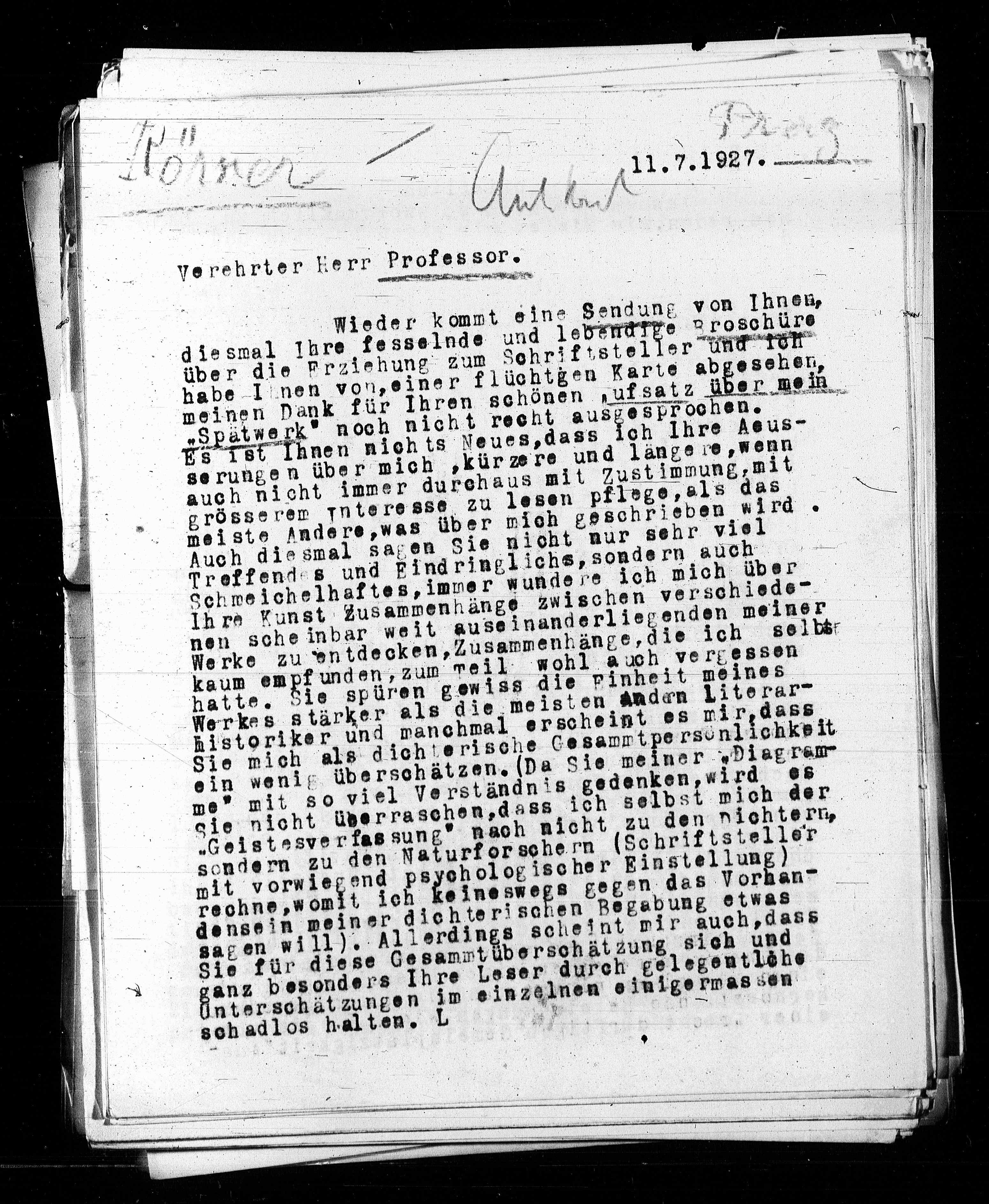 Verehrter Herr Professor.