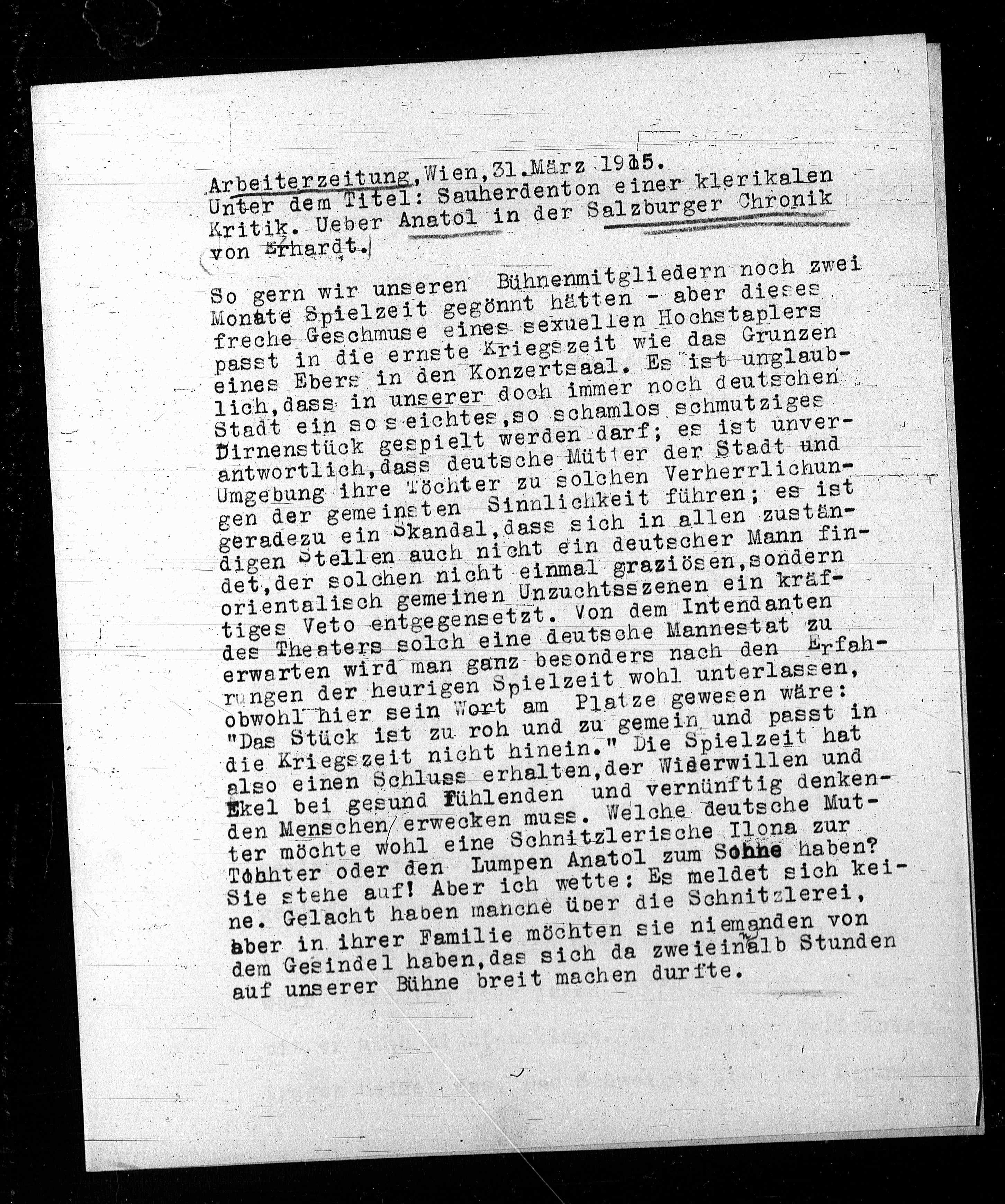 Kritik. Ueber Anatol in der Salzburger Chronik