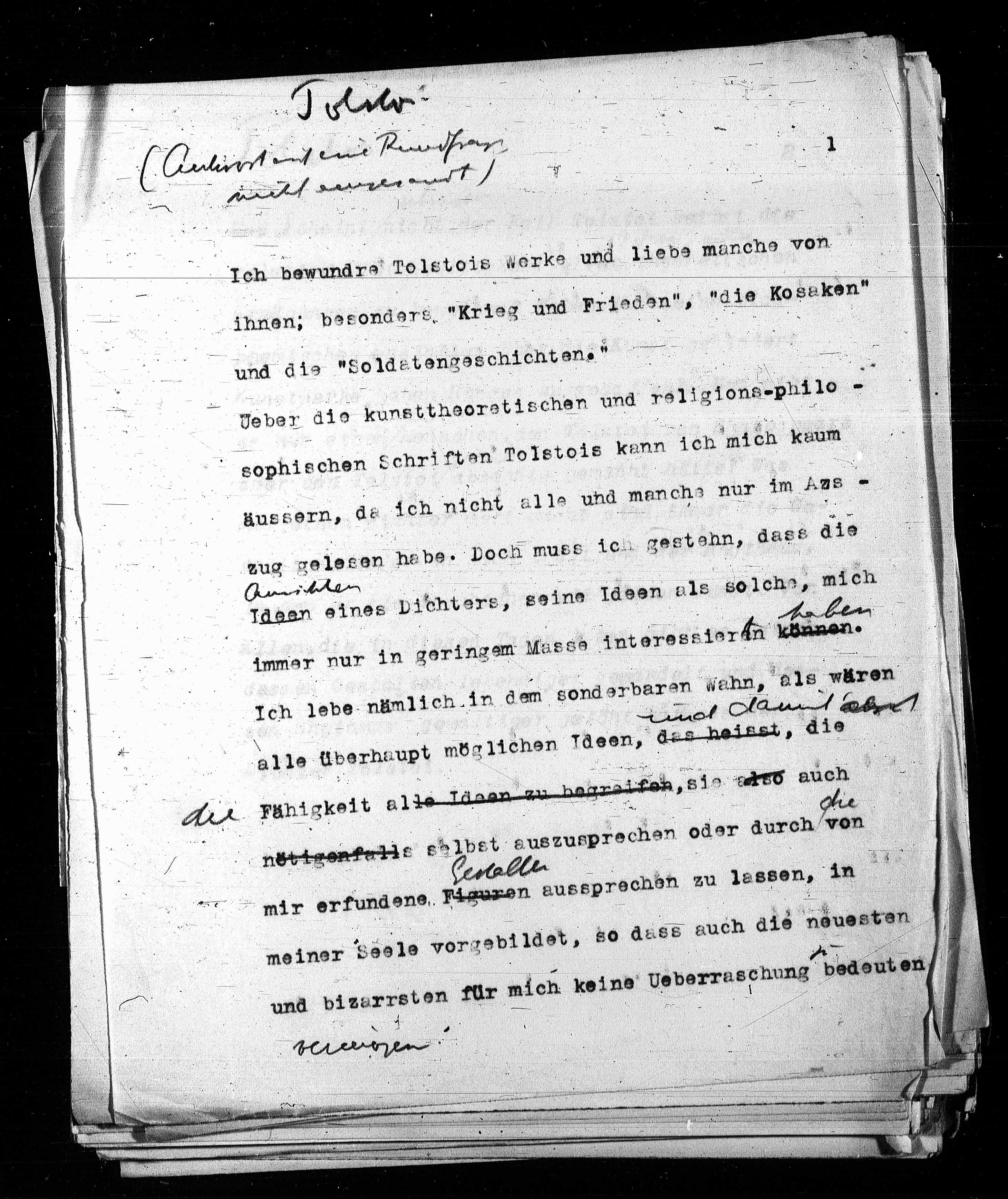 Ich bewundre Tolstois Merke und liebs manche von