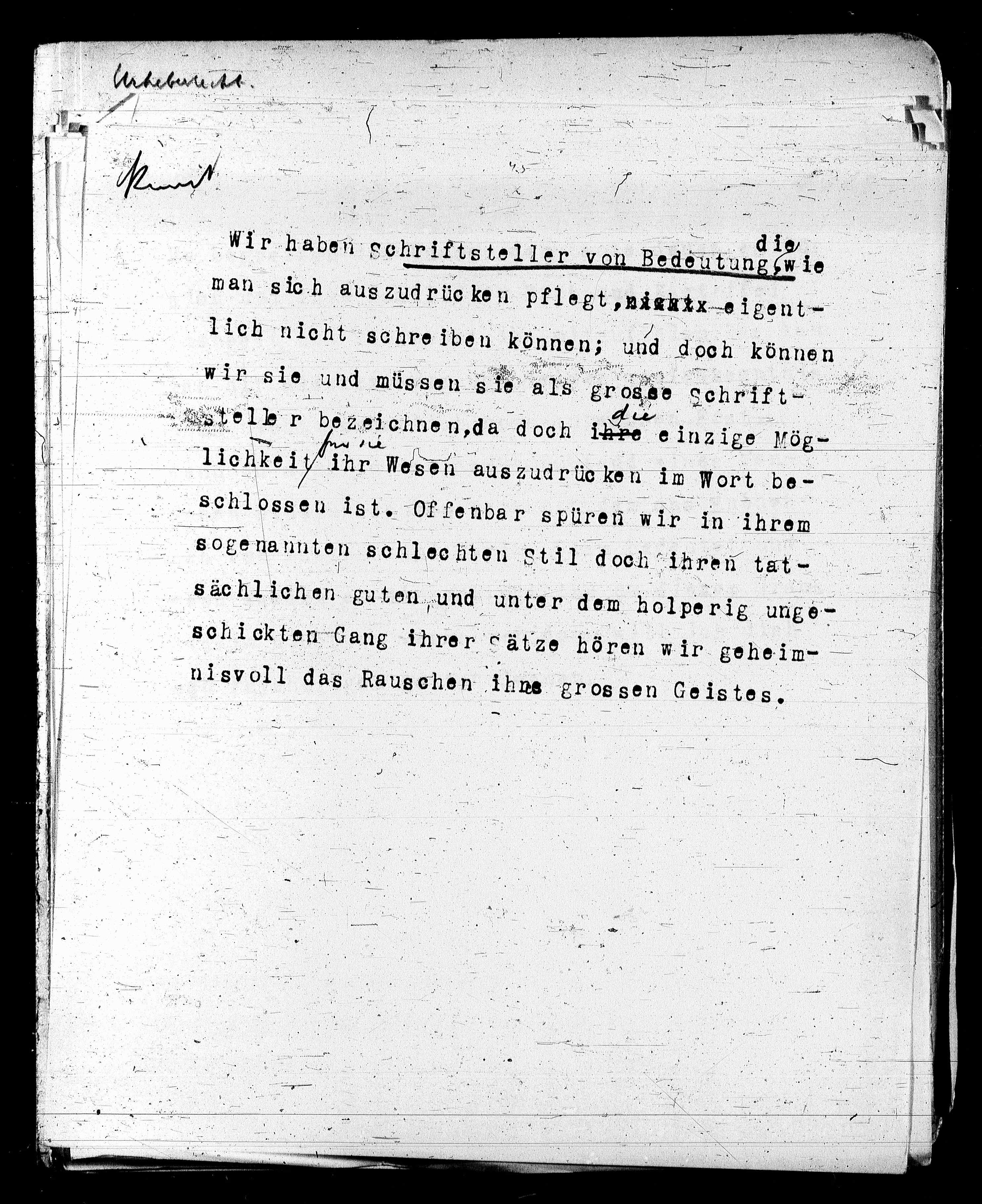nisvoll das Rauschön ihne grossen Geistes.