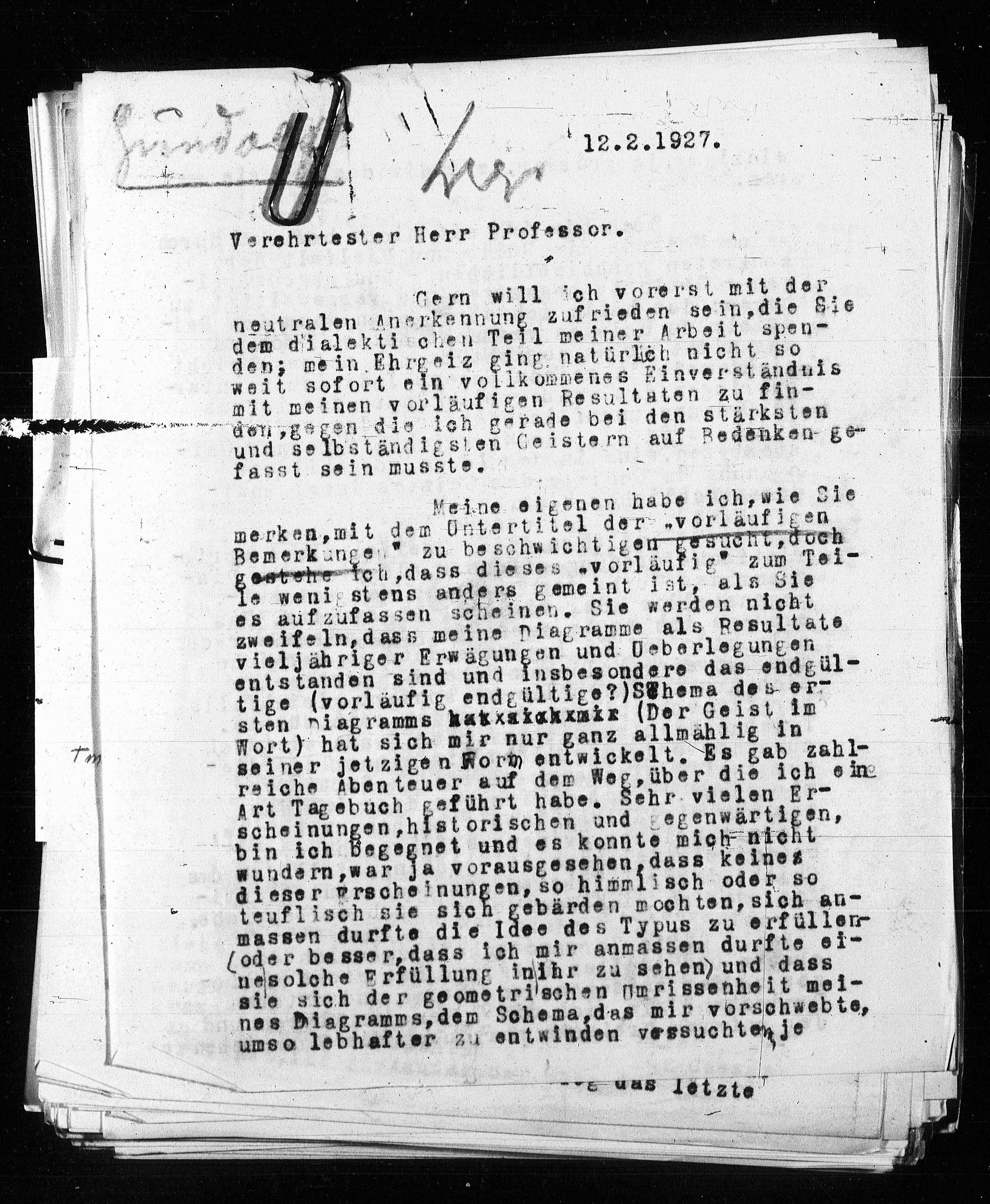 Verehrtester Herr Professor.