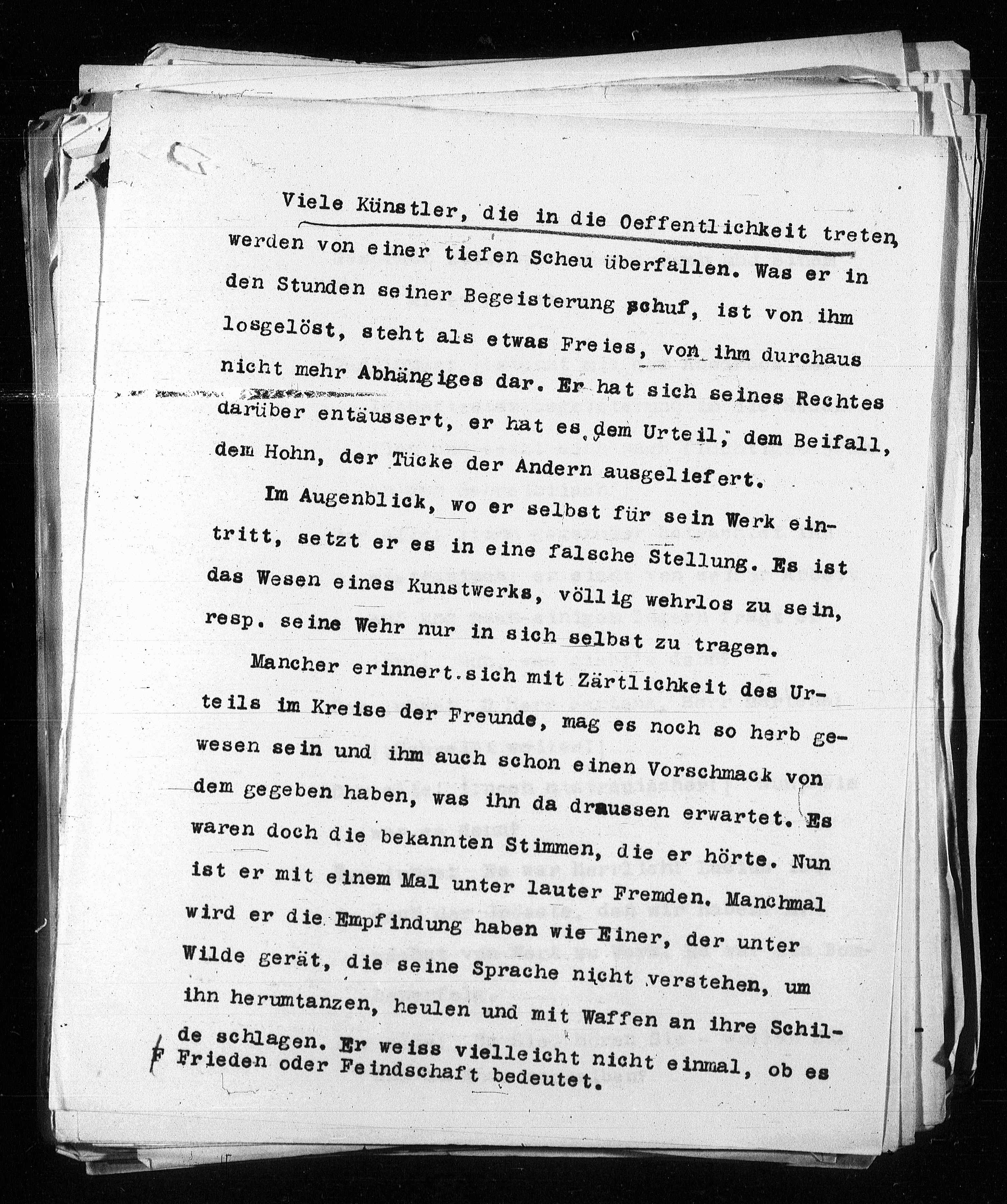 das Wesen eines Kunstwerks, völlig wehrlos zu sein,