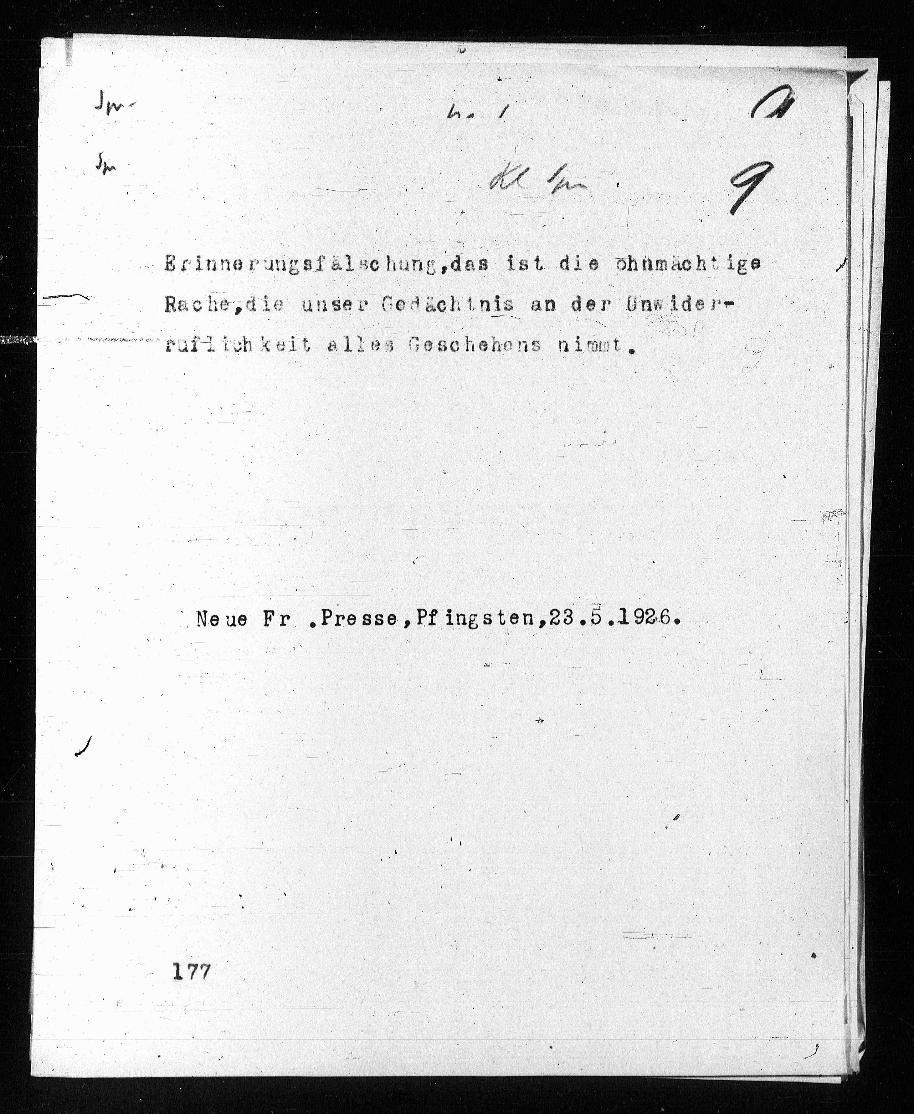 A10: Aphorismen, Seite 230, in: Mikroverfilmung des Cambridger Nachlasses. Hg. Peter Andorfer, Martin Anton Müller und Laura Untner, Austrian Centre for Digital Humanities and Cultural Heritage, Wien 2024, https://schnitzler-mikrofilme.acdh.oeaw.ac.at/1589067_0230.html