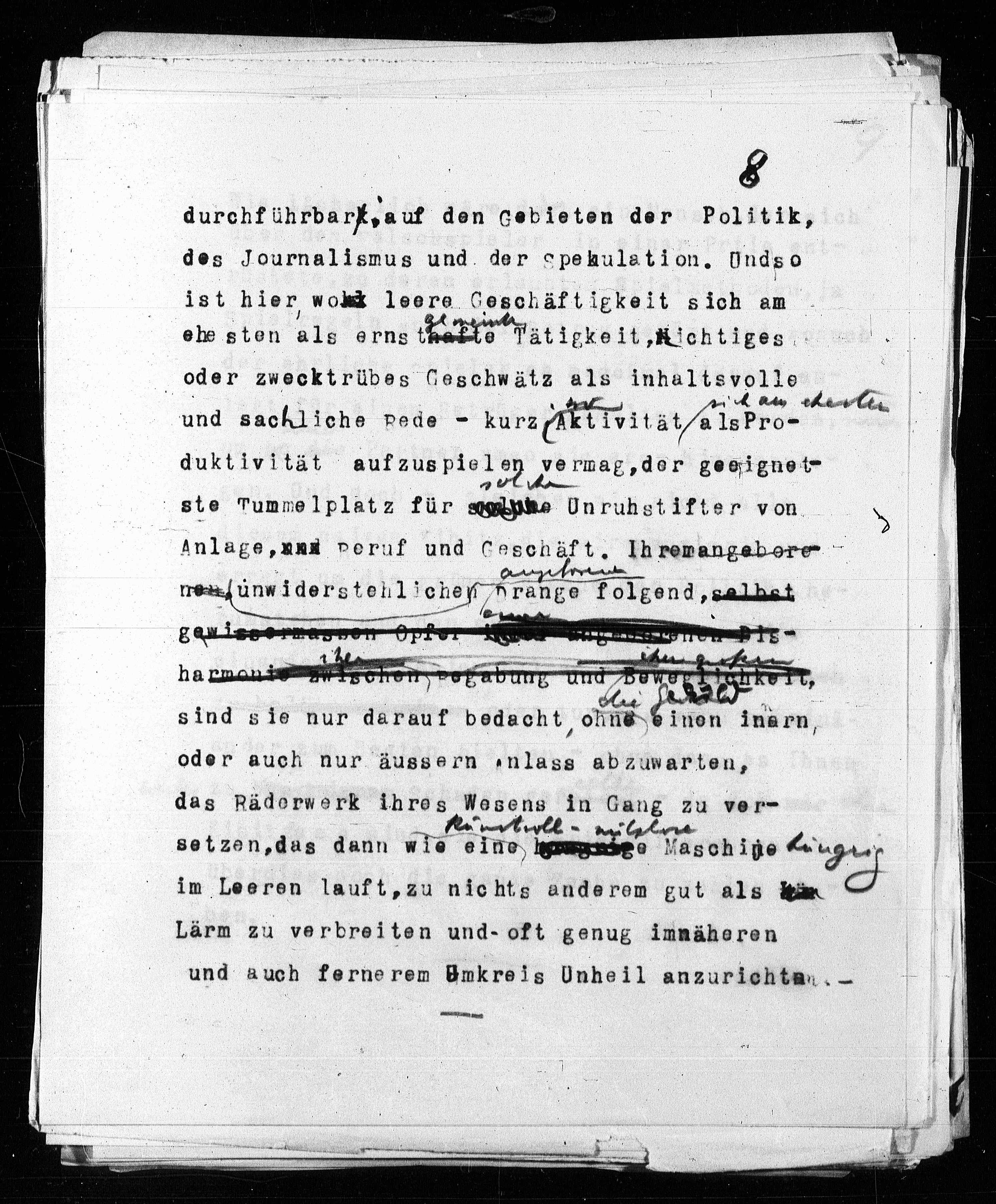 im Leeren lauft, zu nichts anderem gut als hin