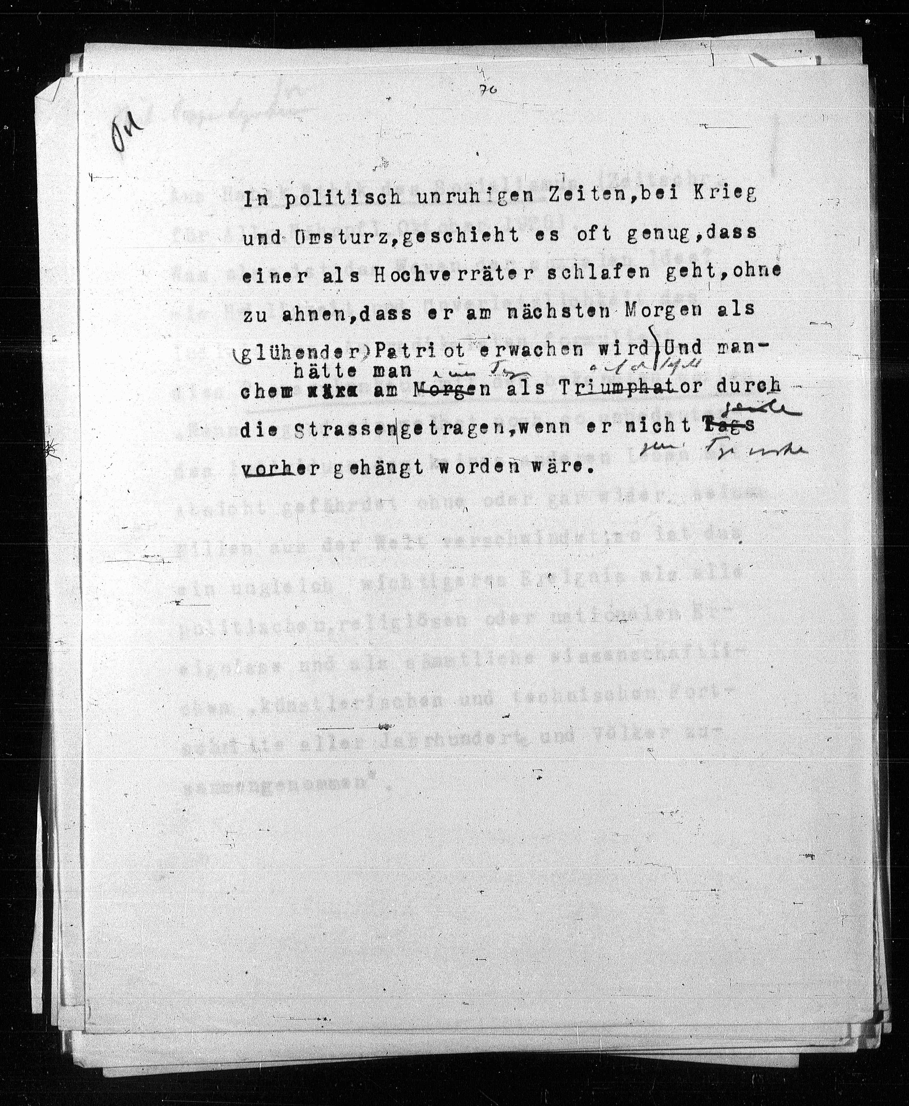 einer als Hochverräter schlafen geht, ohne