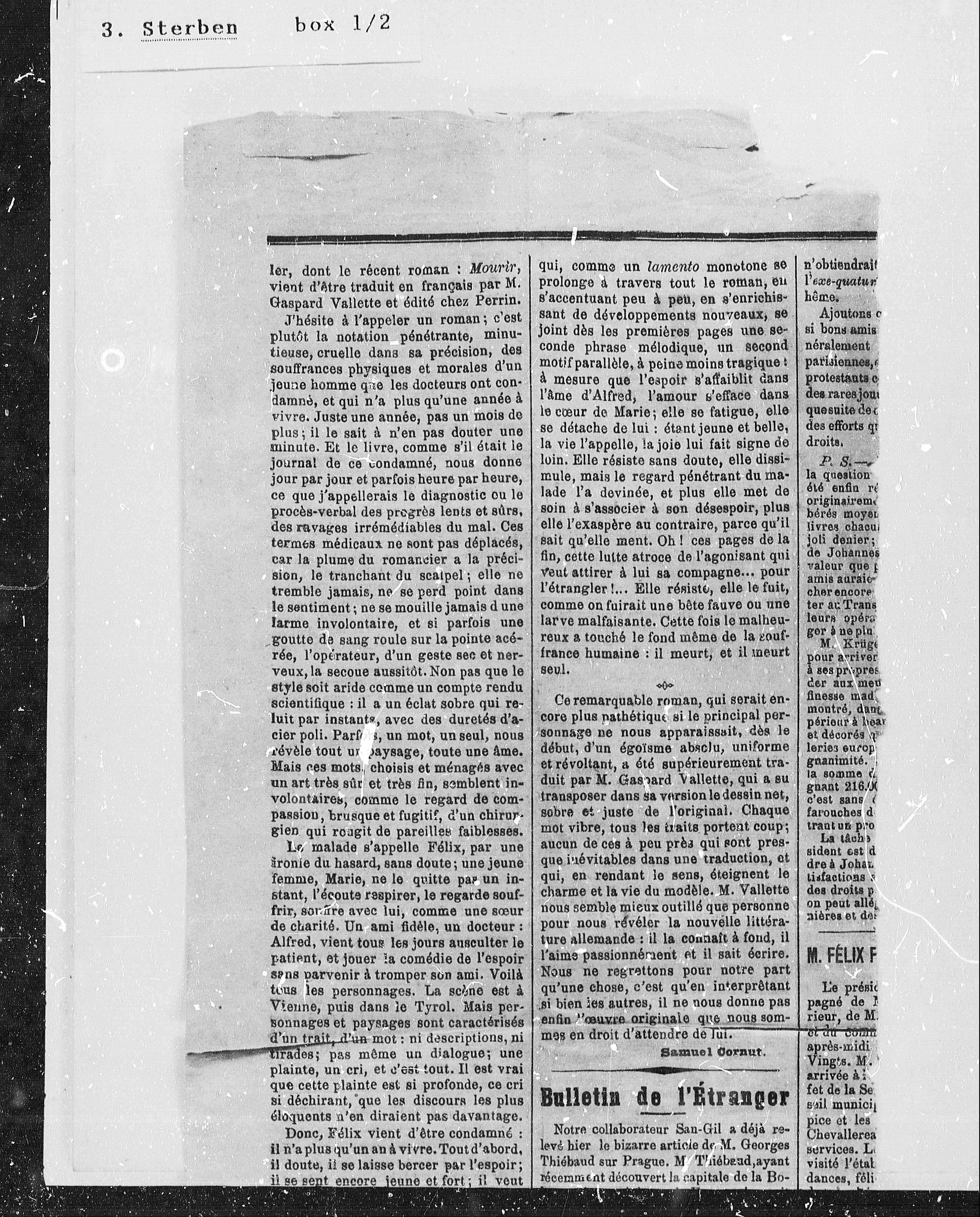 ler, dont le récent roman: Mourir,