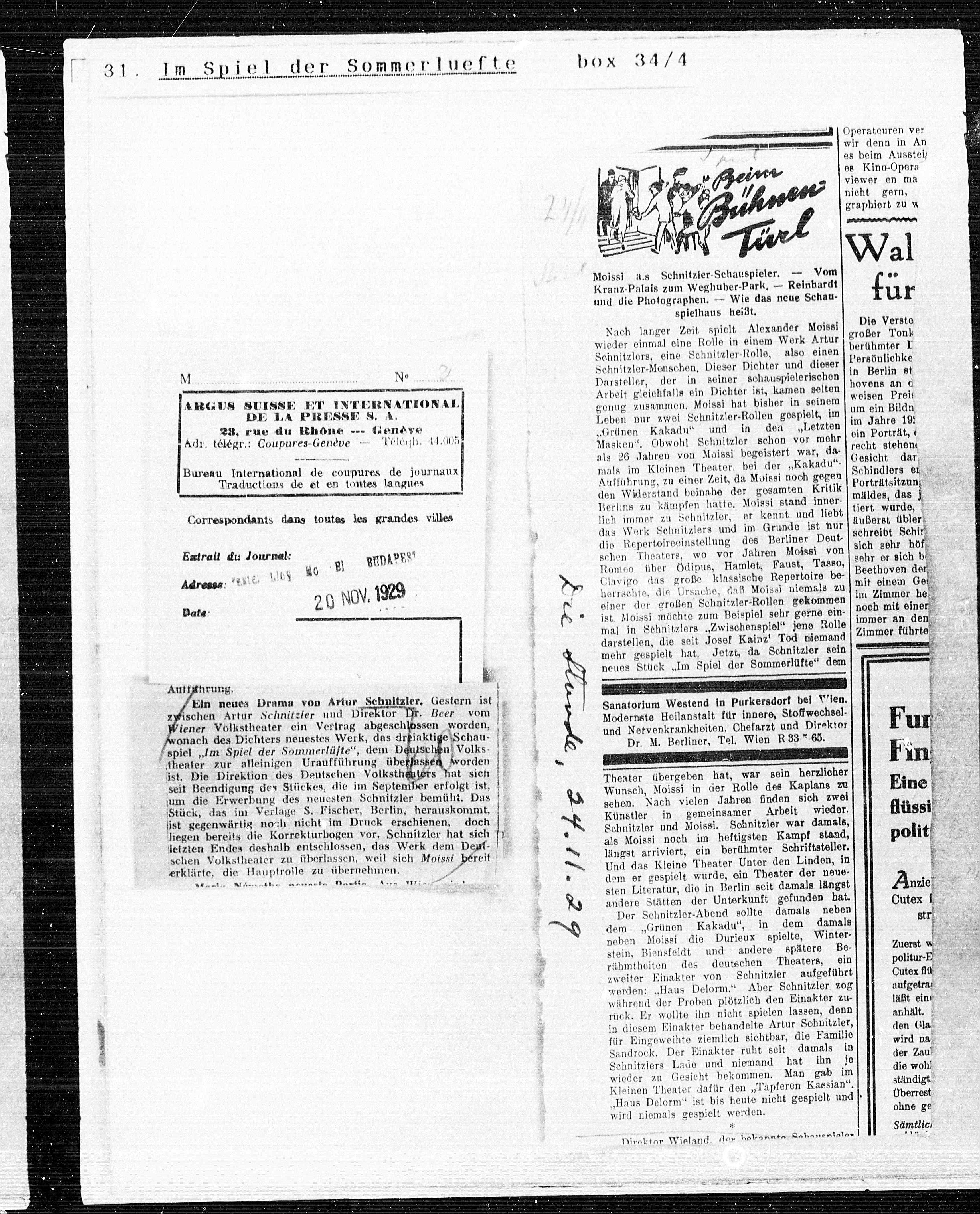Moissi a.s Schnitzler-Schauspieler. — Vom