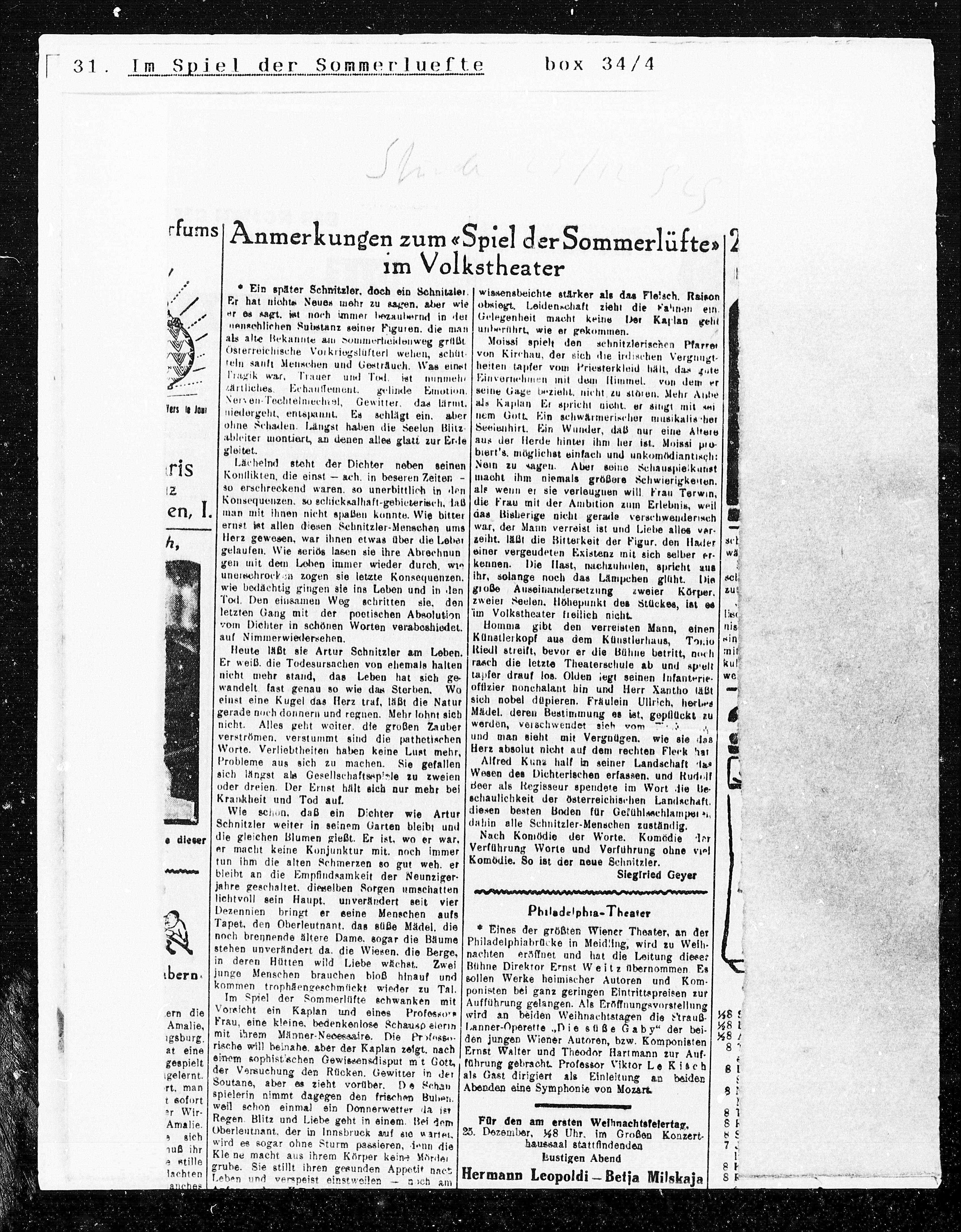 Heute läßt sie Artur Schnitzler am Leben.
