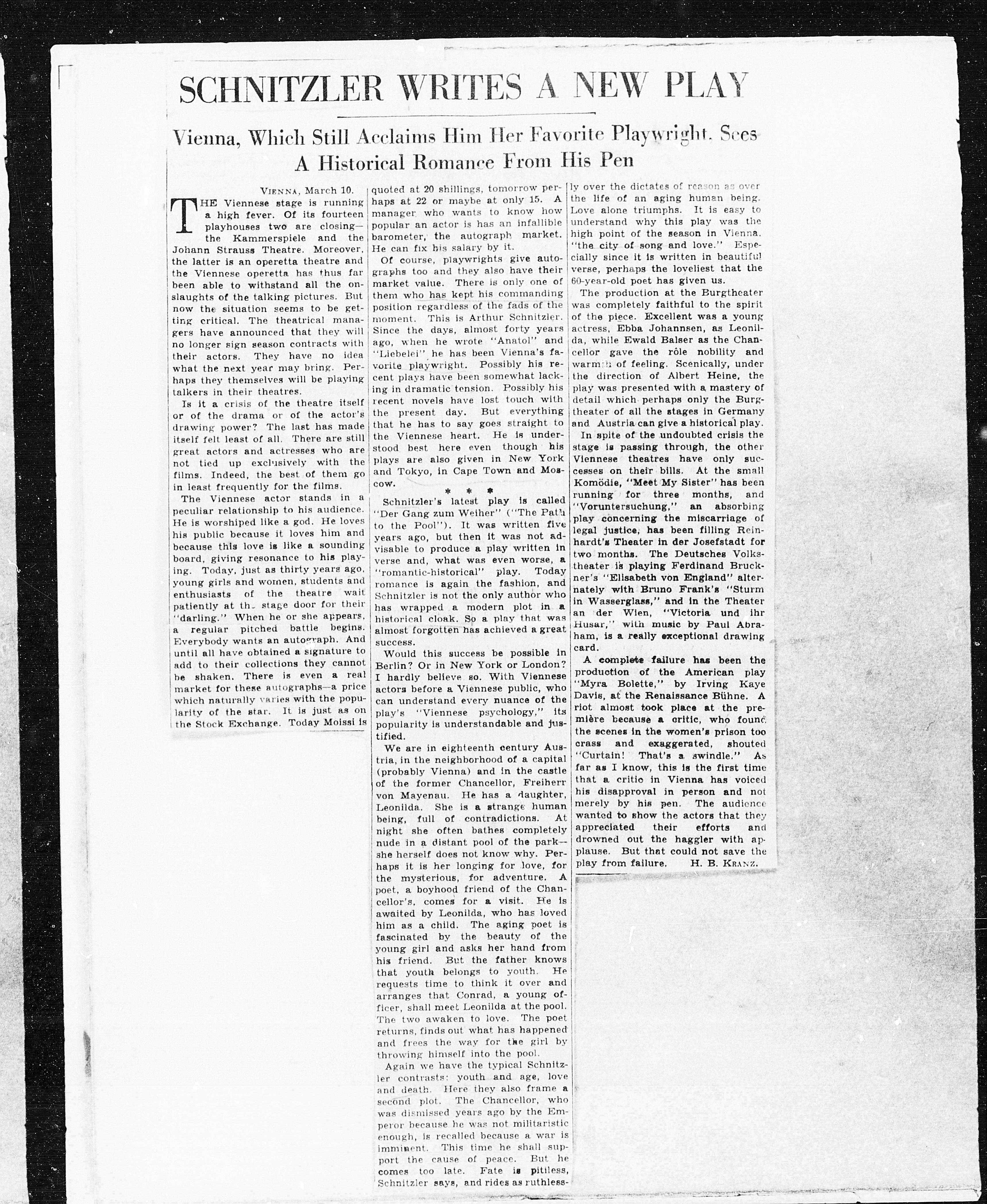 SCHNITZLER WRITES A NEW PLAY