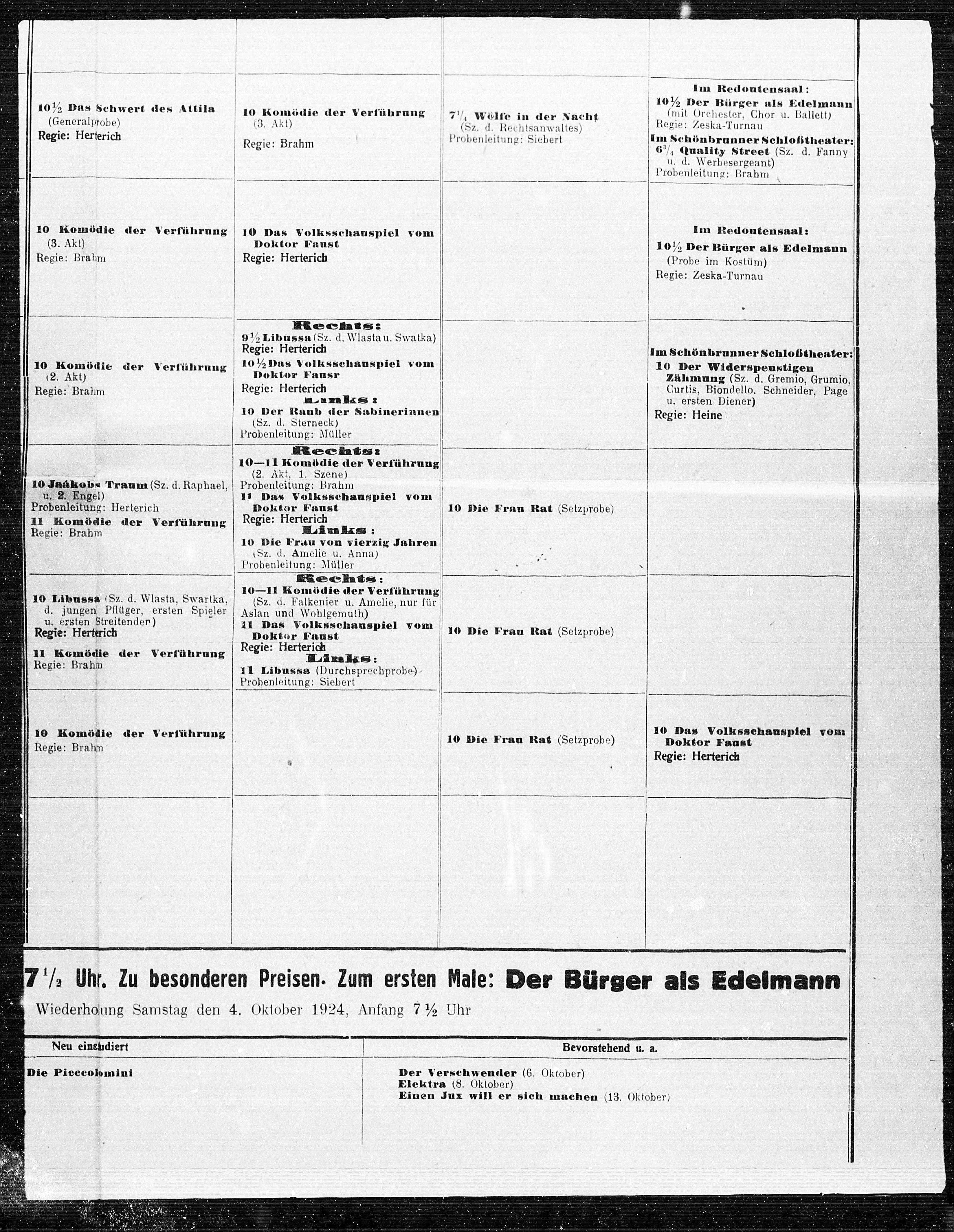 Wiederhoung Samstag den 4. Oktober 1924, Anfang 7½ Uhr
