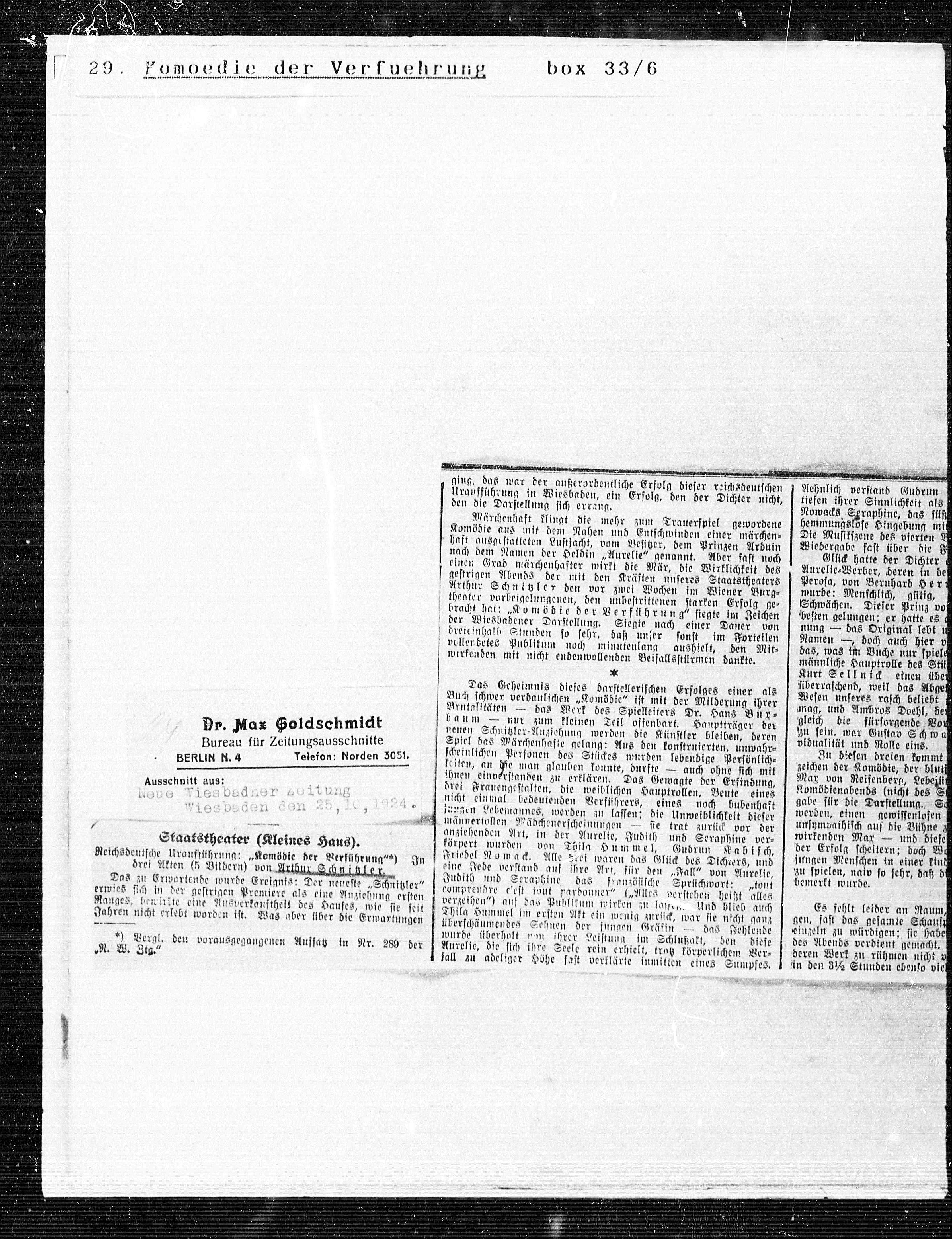 Reichsdeutsche Uraufführung: „Komödie der Verführung**) In