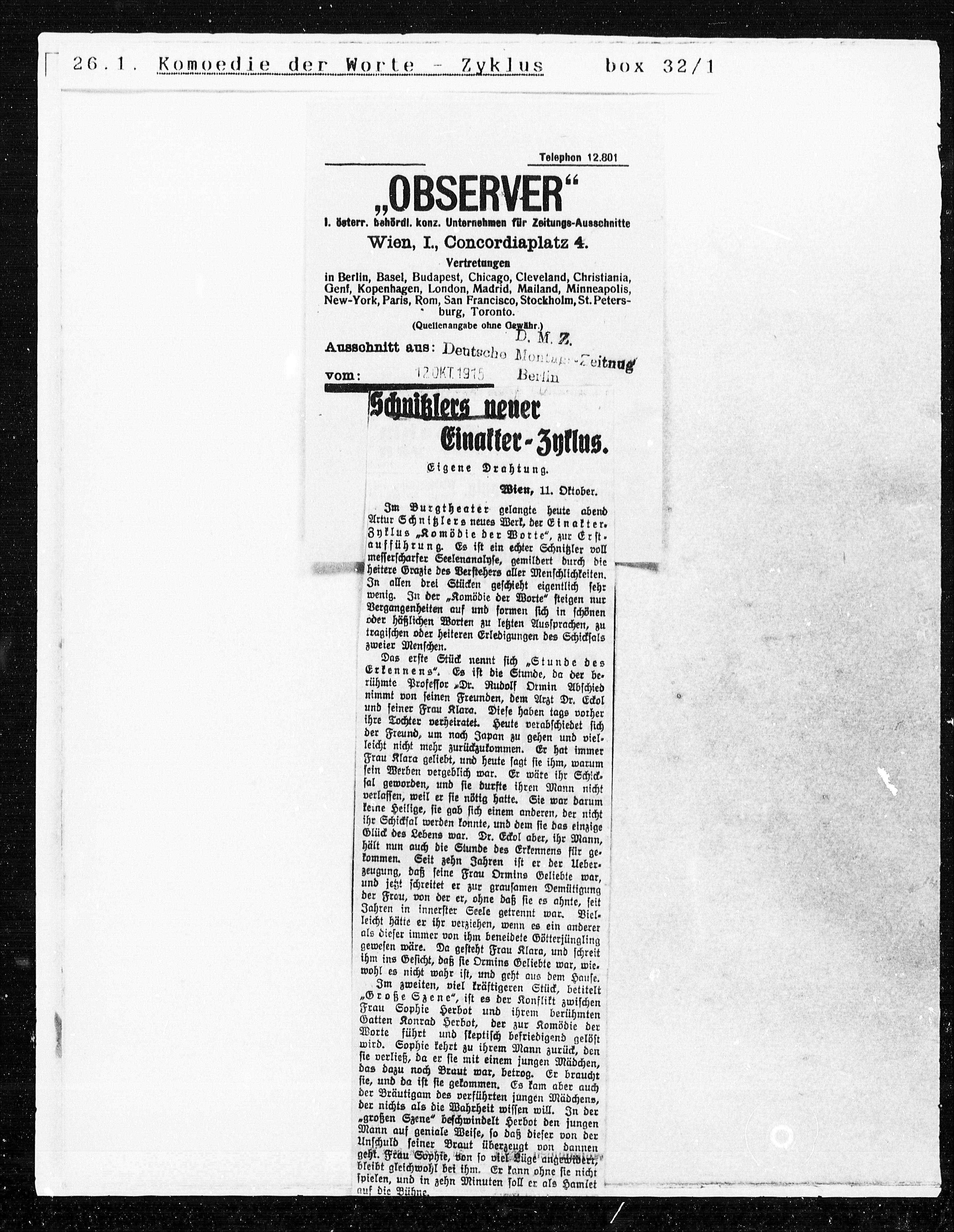 Artur Schnitzlers neues Werk, der Einakter¬