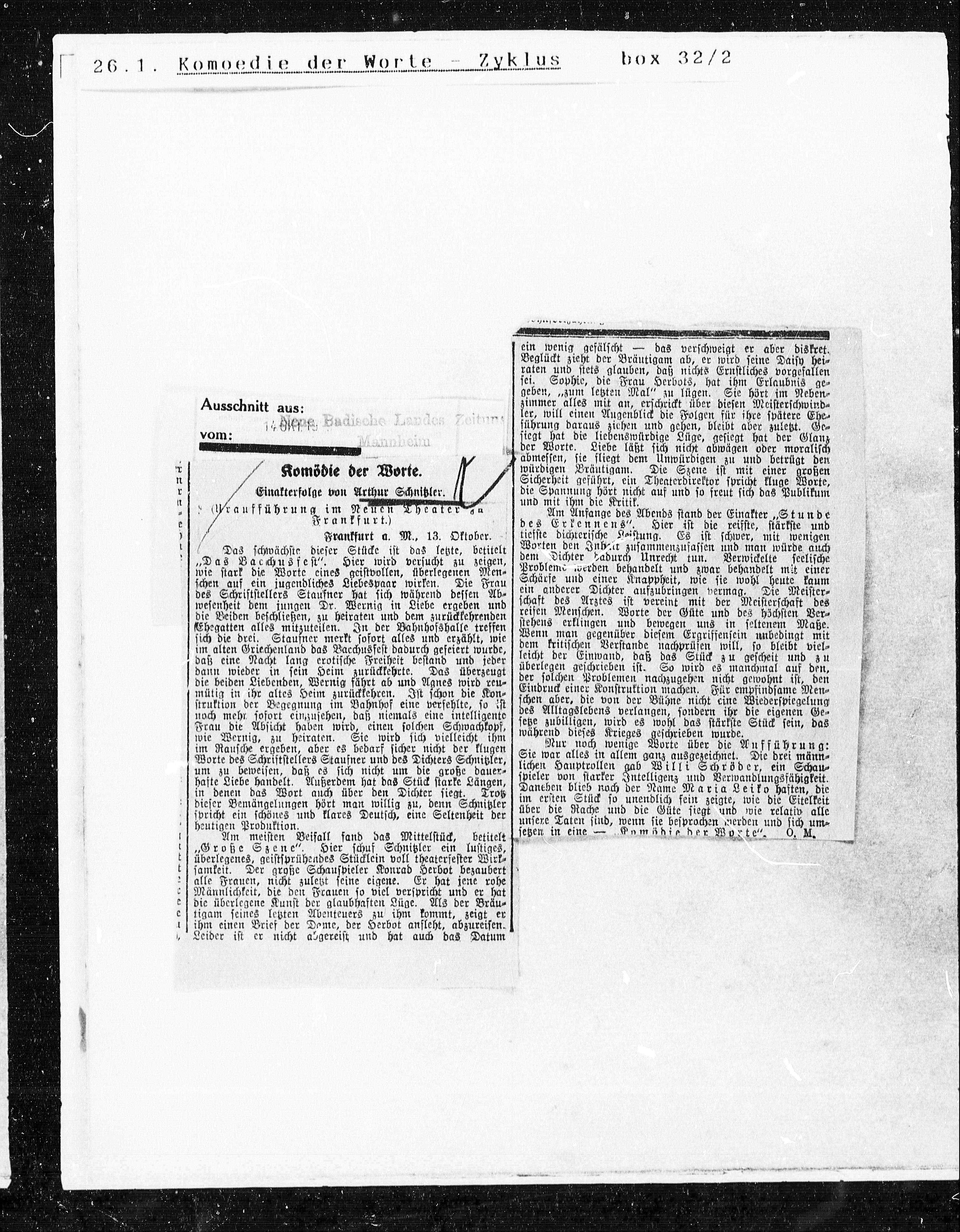 Einakterfolge von Arthur Schnitzler.