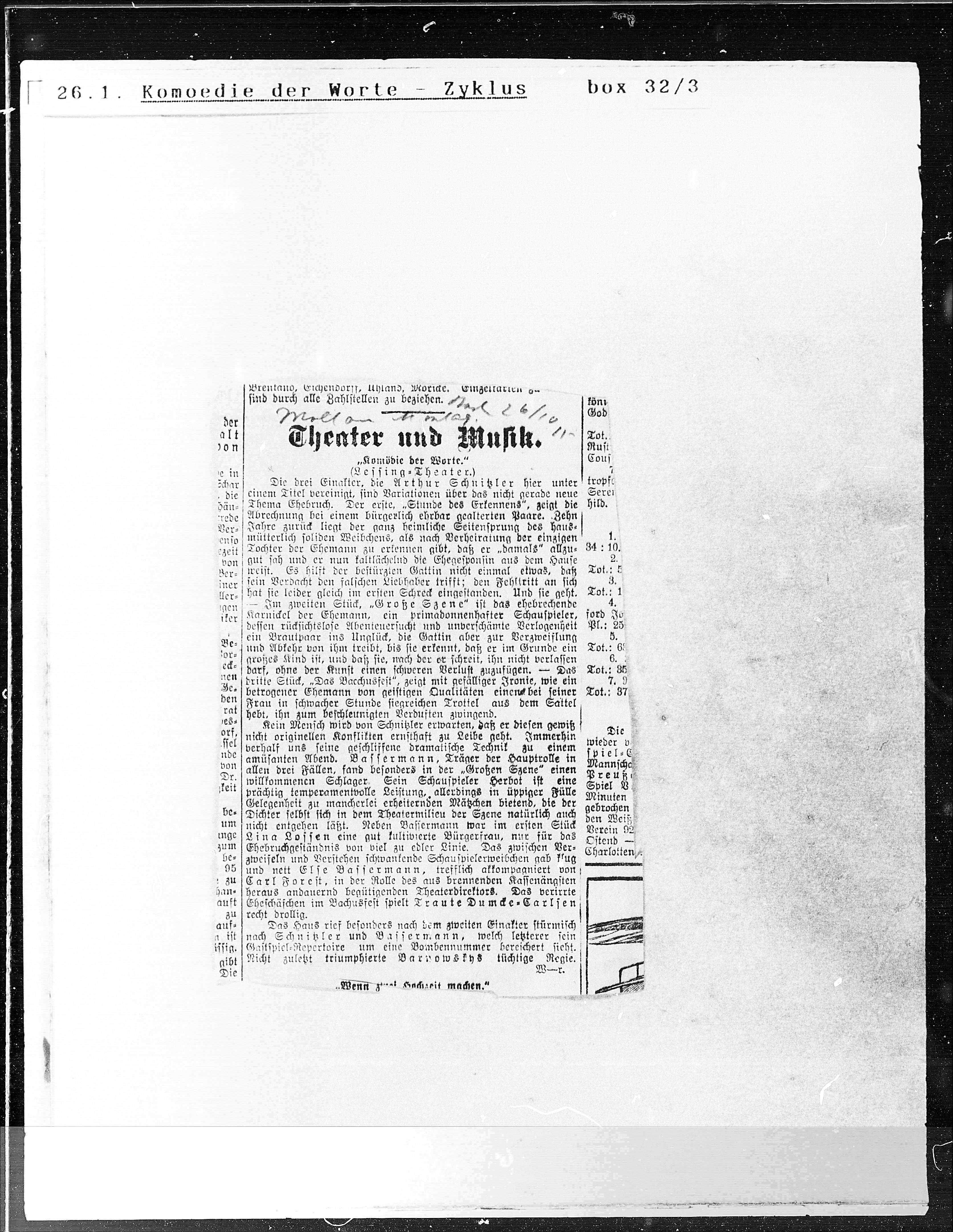 nicht entgeben läßt. Neben Bassermann war im ersten Stück