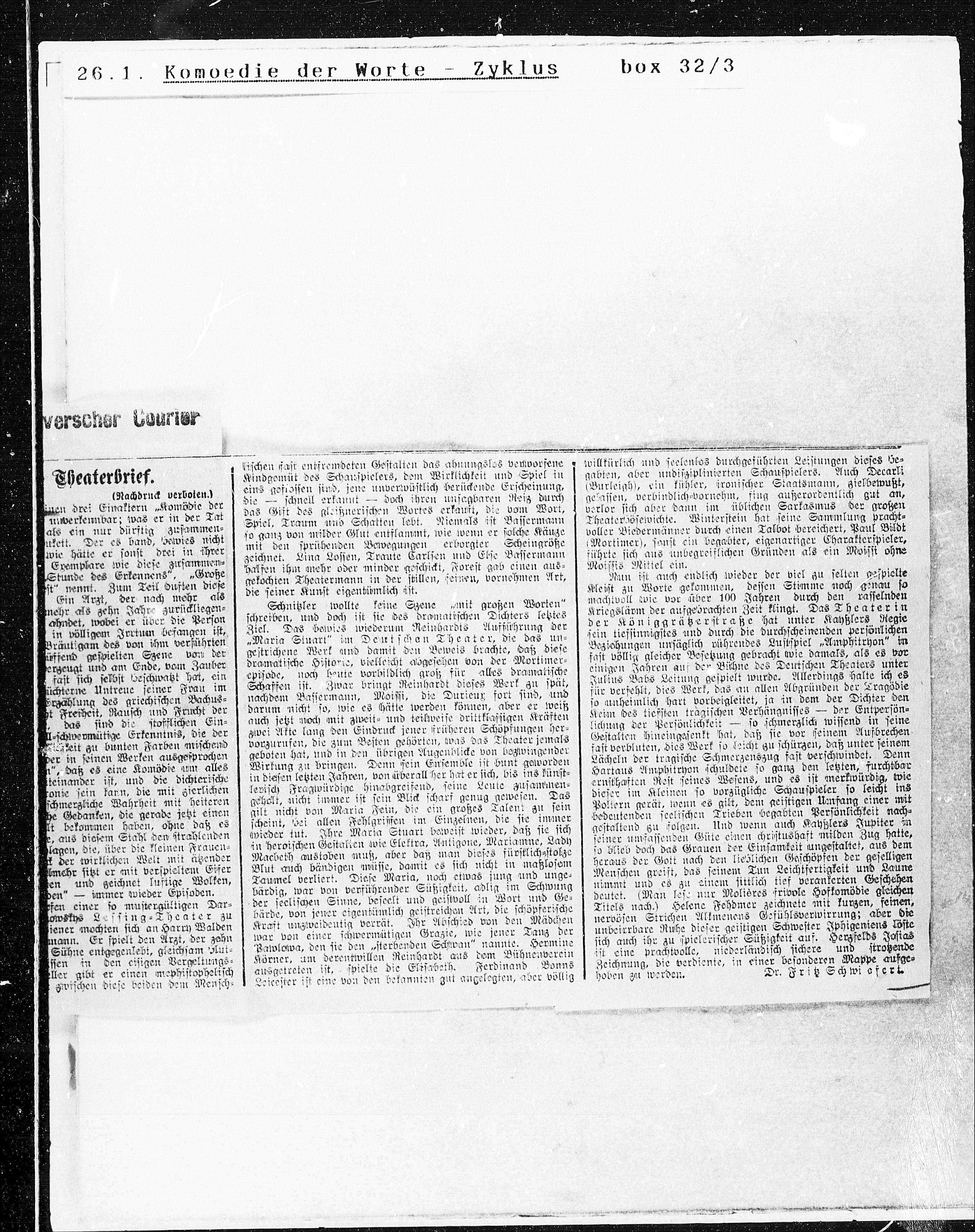 nachdem Bassermann, Moissi, die Durieux fort sind, und