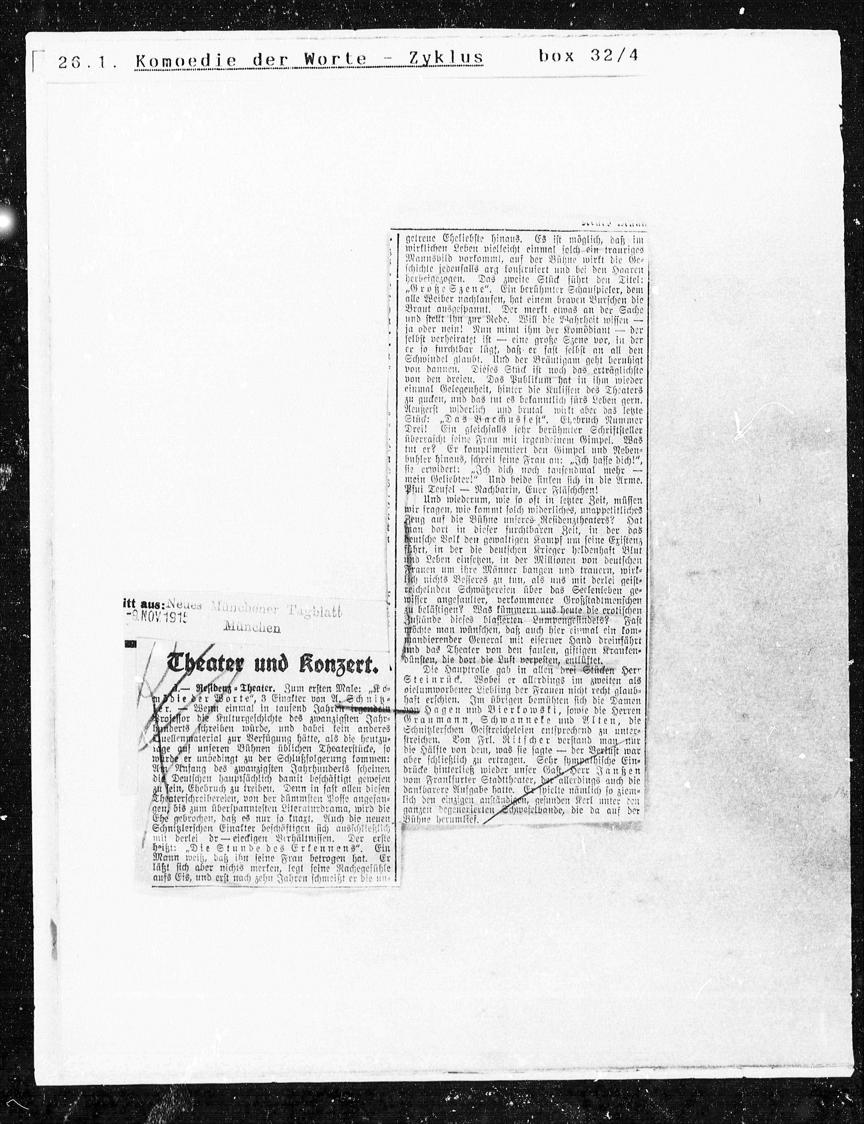 Residenz=Theater. Zum ersten Male: „Ko¬