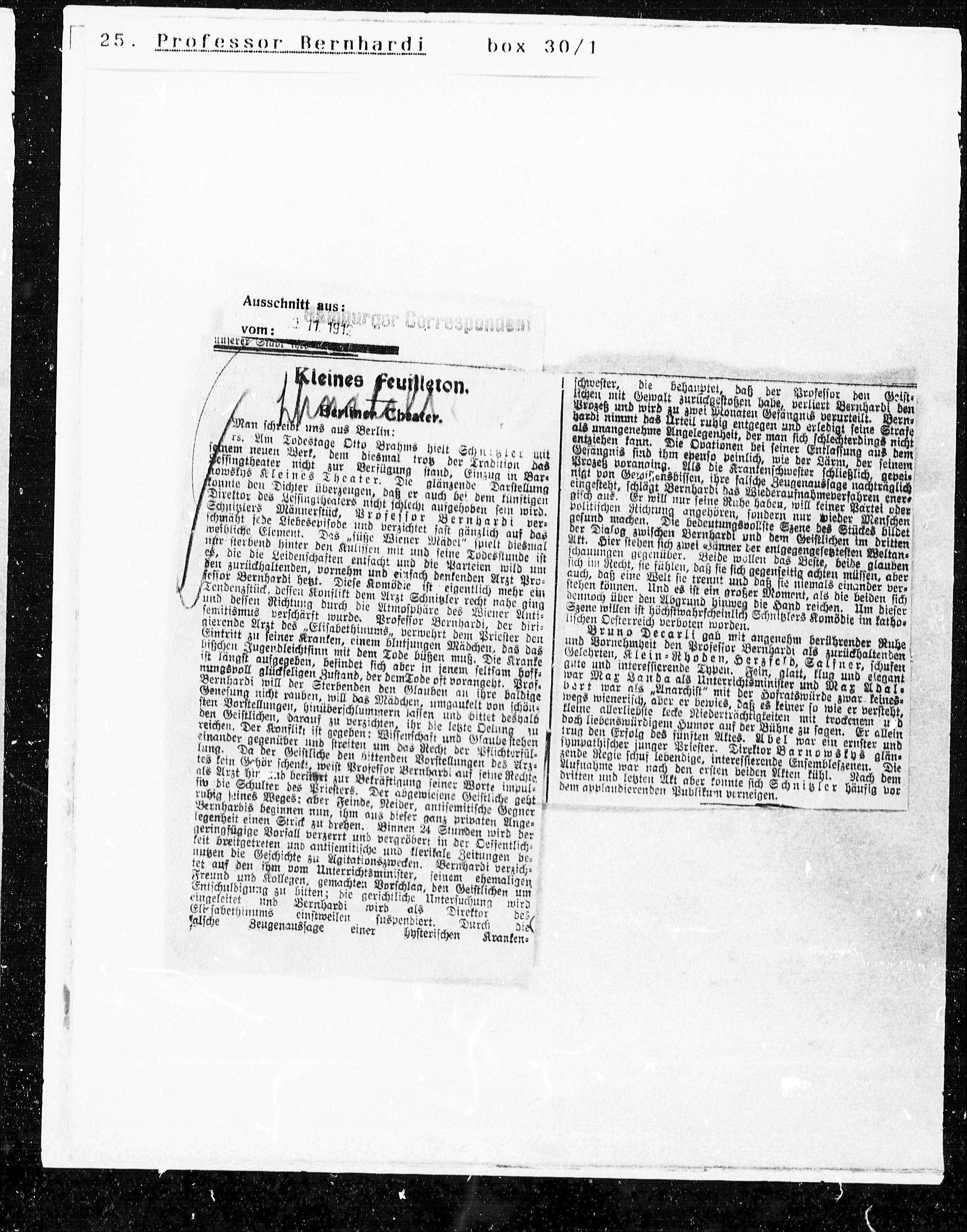 tes kein Gehör schenkt, weist Professor Bernhardi auf seine Rechte