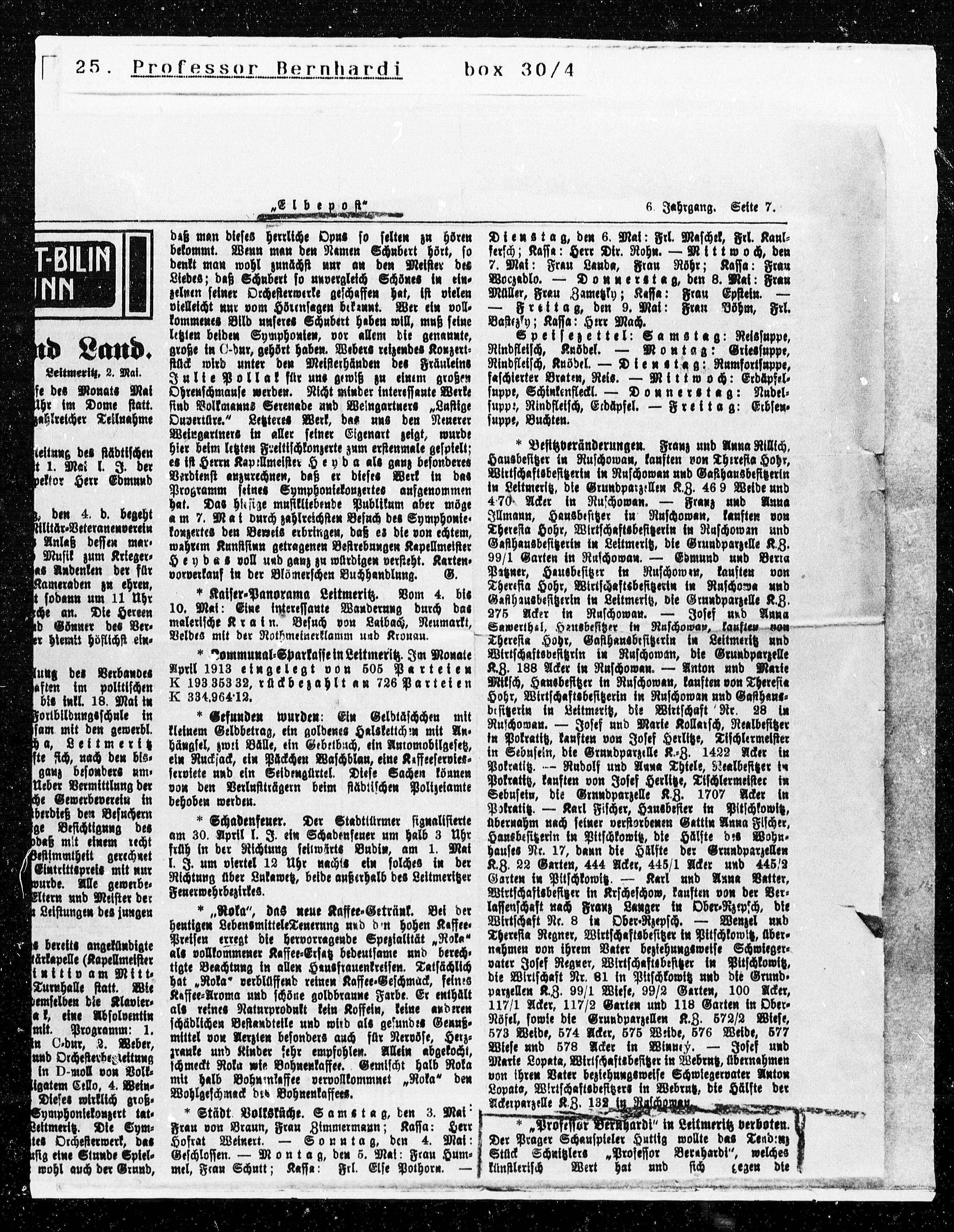 „Professor Berkhardi“ in Leitmeritz verboten.