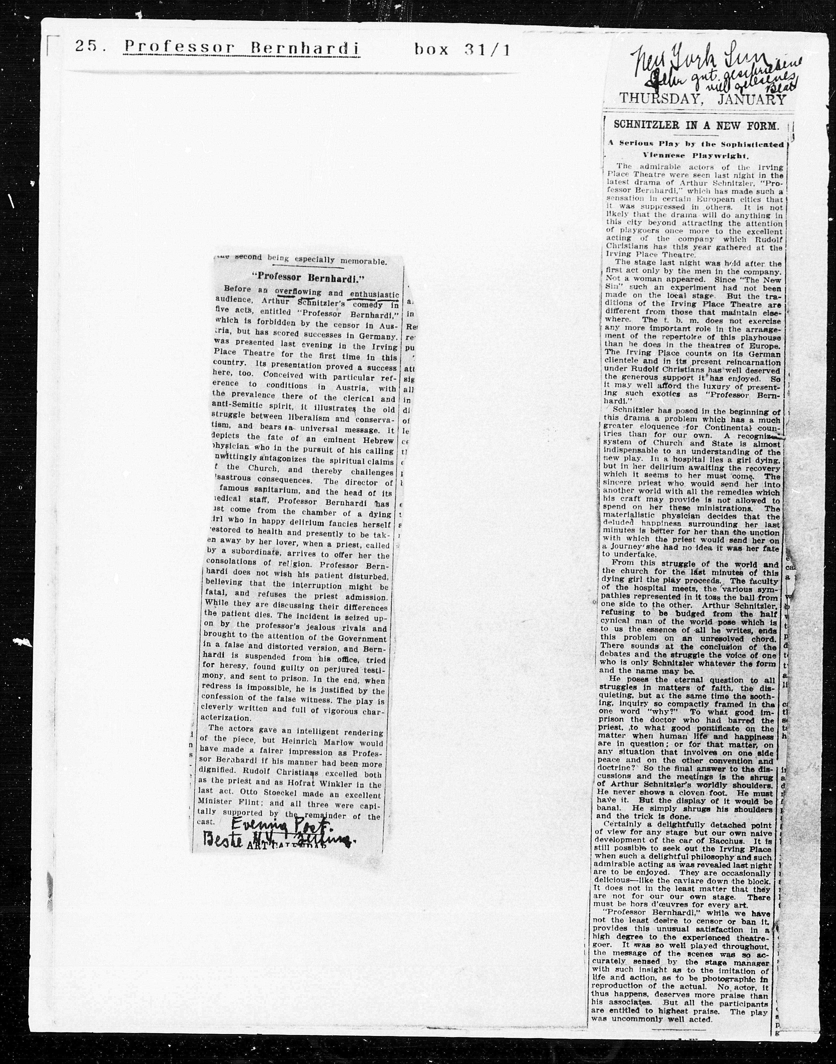 five acts, entitled“ Professor Bernhardi,“