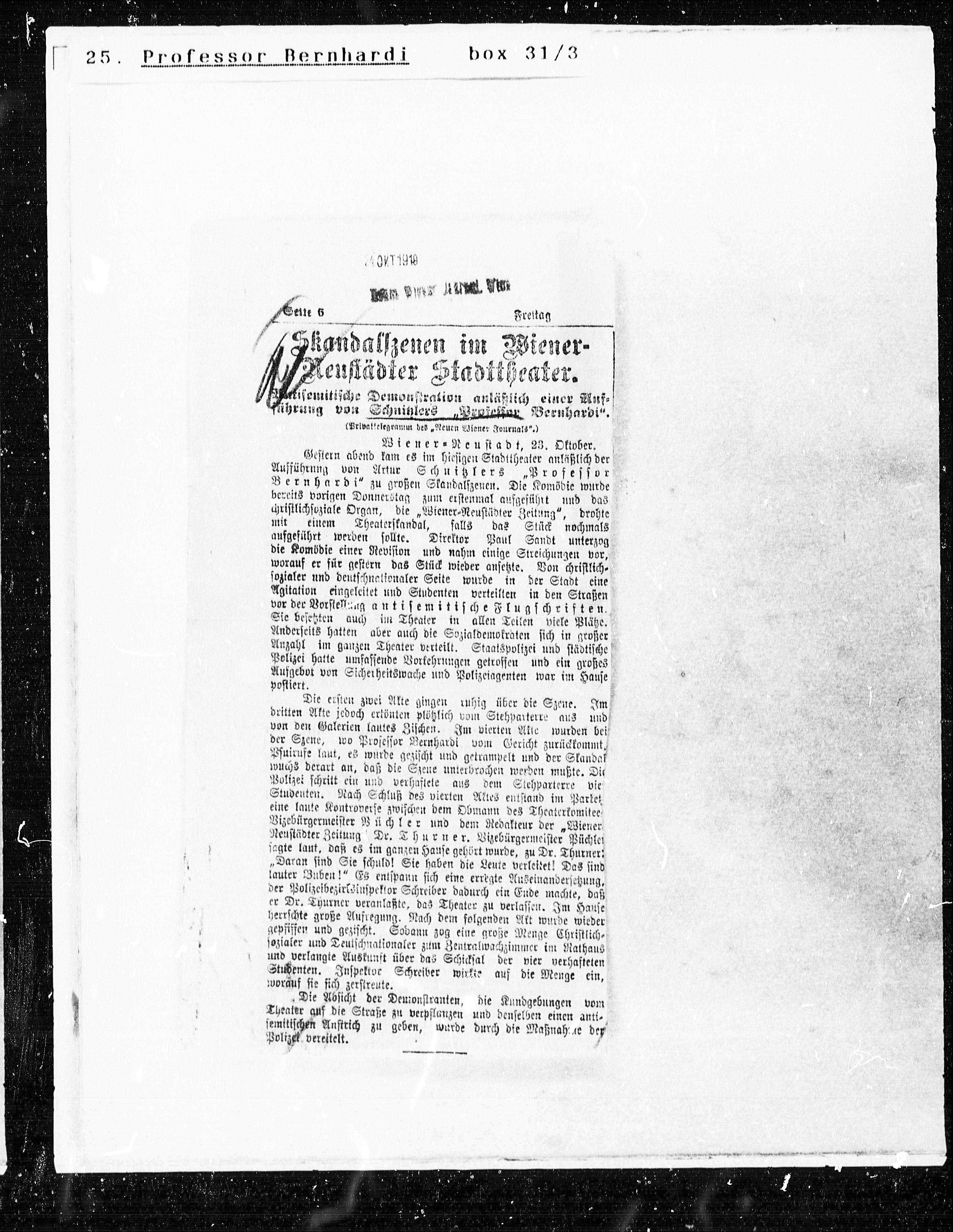 Bernhardi“ zu großen Skandalszenen. Die Komödie wurde