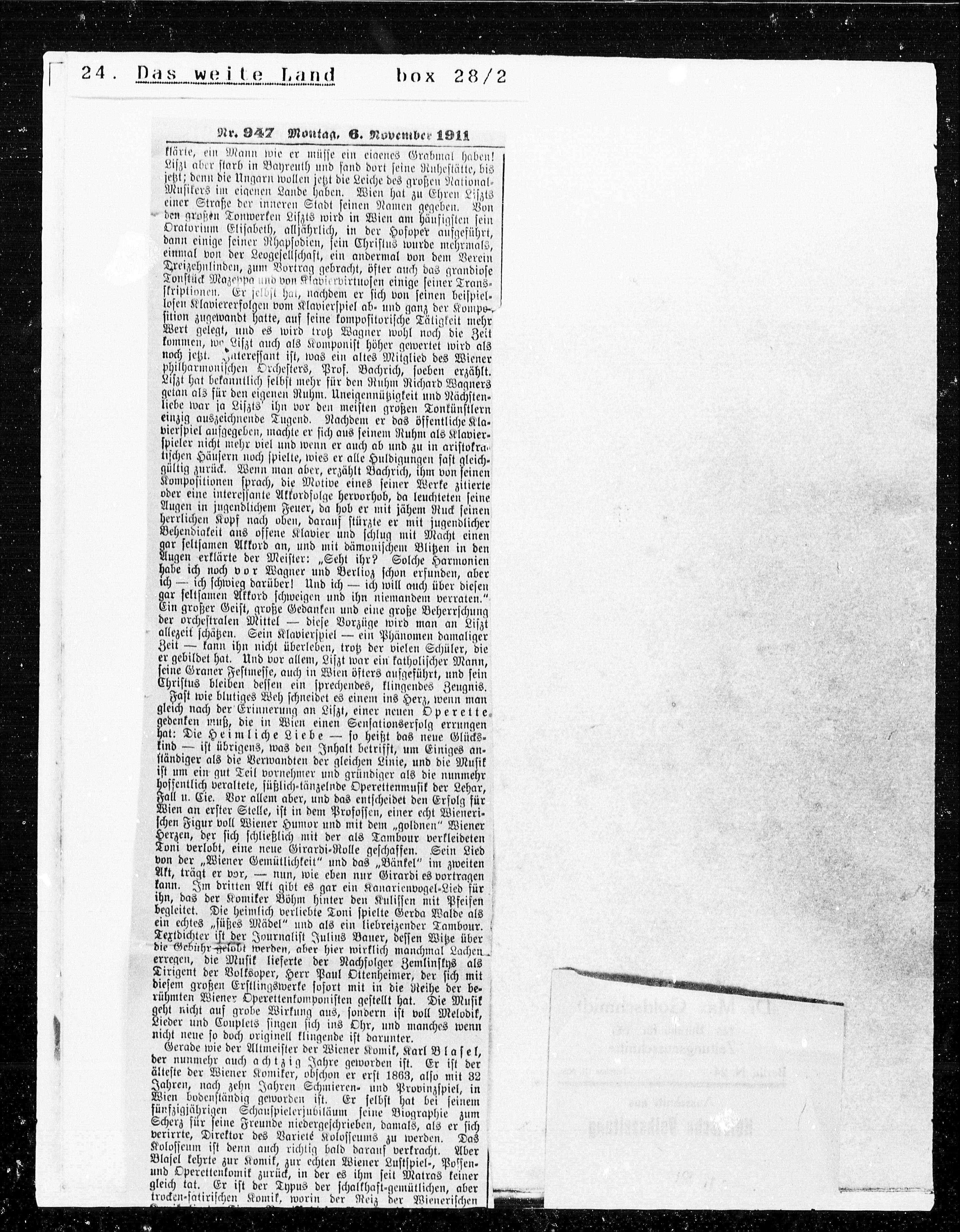 gleich nach der Erinnerung an Liszt, einer neuen Operette.